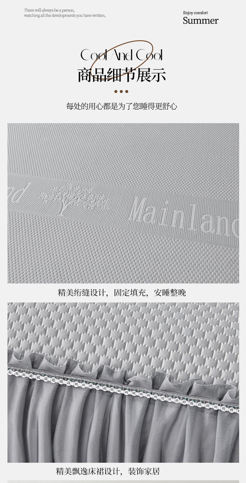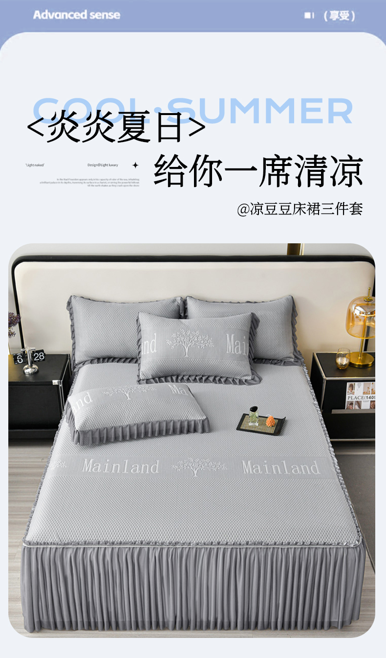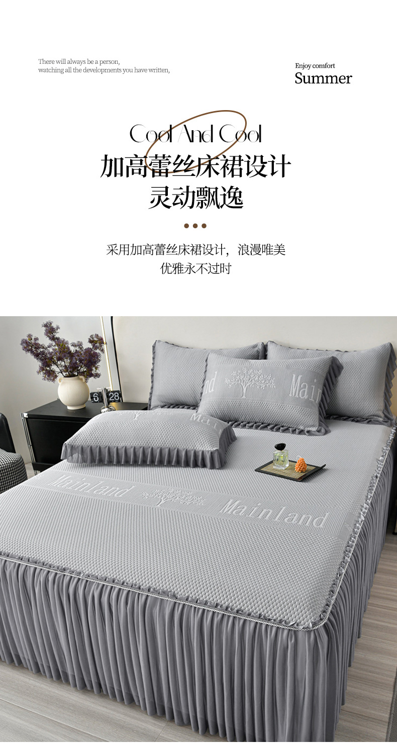 商品名称:星窝家纺 2026新款冰豆豆床裙款凉席 灰调树影