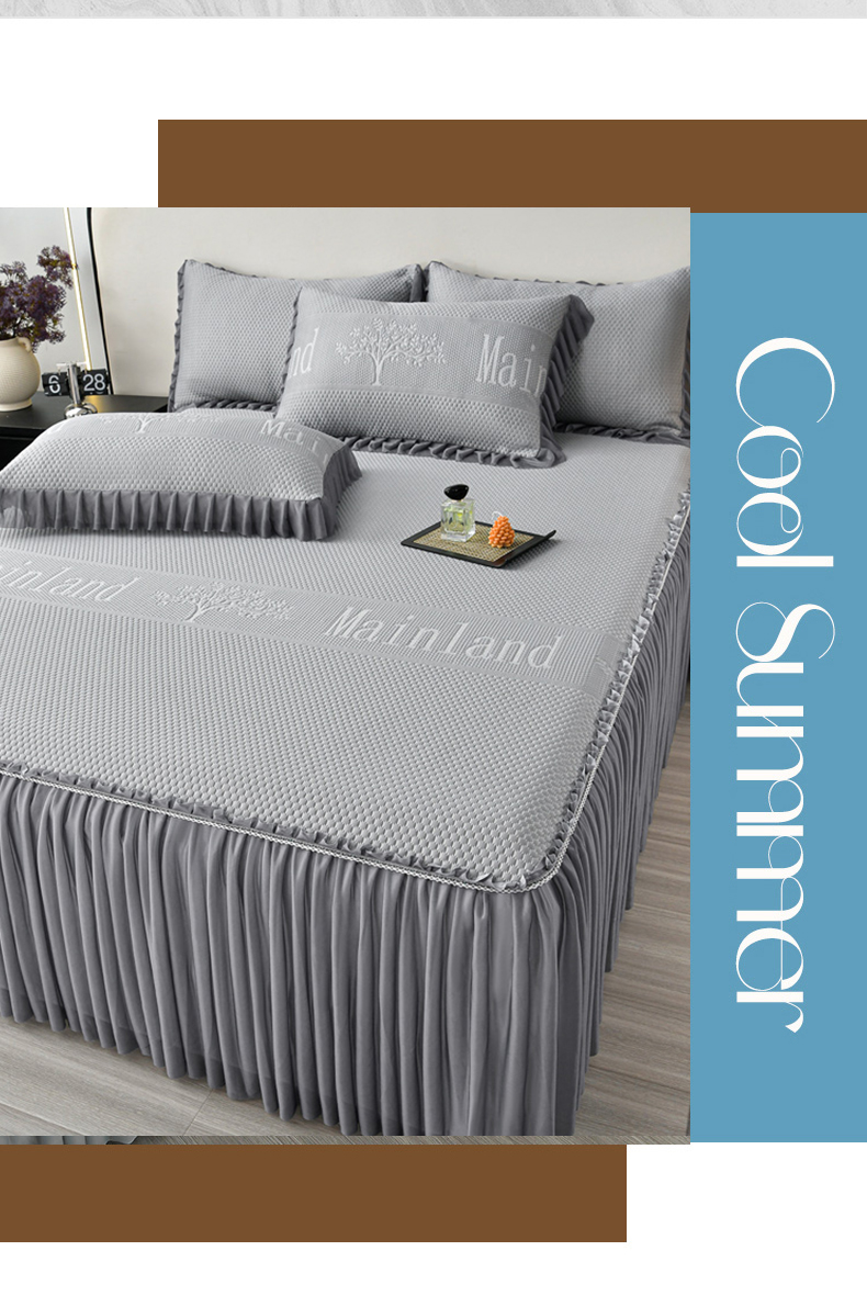 星窝家纺 2026新款冰豆豆床裙款凉席 灰调树影