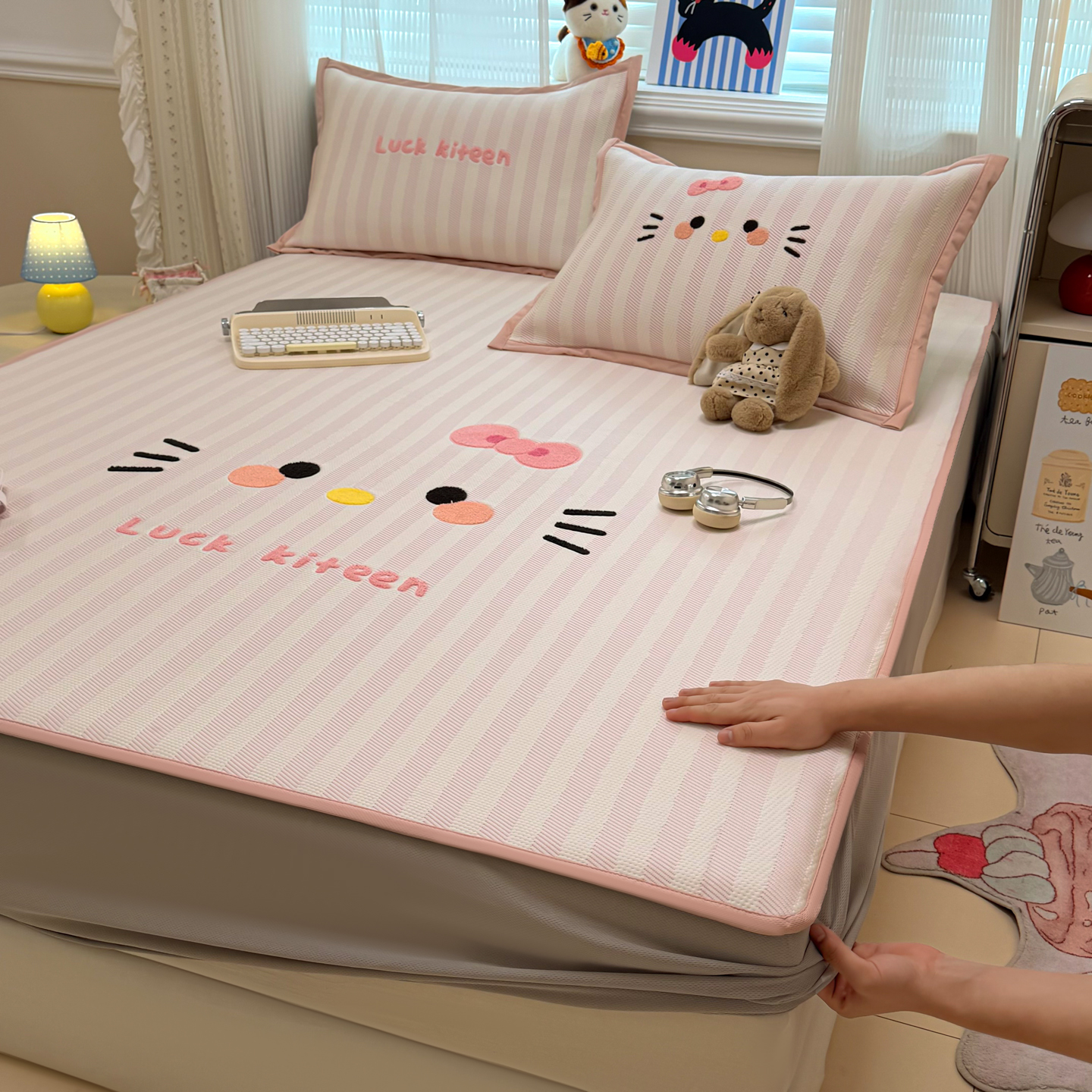 (总)懒猫家纺 2026新款卡通提花凉豆豆床笠款凉席,爱心小熊-床笠款,粉绒兔子-床笠款,活力狗仔-床笠款,萌趣鸭丫-床笠款,少女甜梦-床笠款,兔兔乐园-床笠款,星糖蓝猫-床笠款