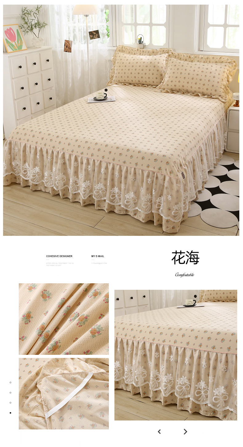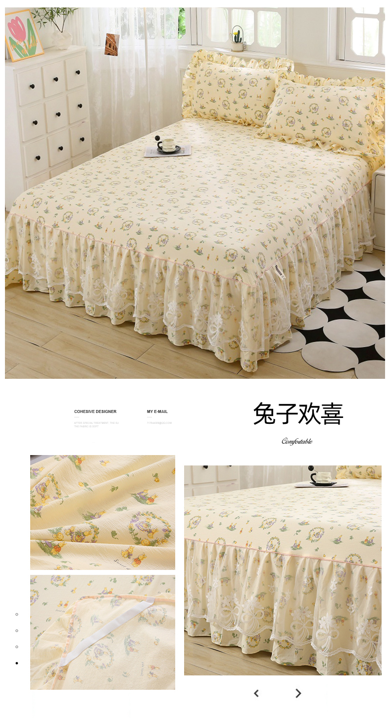 • 91家纺网 家纺一手货源 找家纺 乐逸家纺 2026新款A类母婴双层纱床裙韩版蕾丝花边床裙小清新印花床裙源头供货现货 落日暮年绿