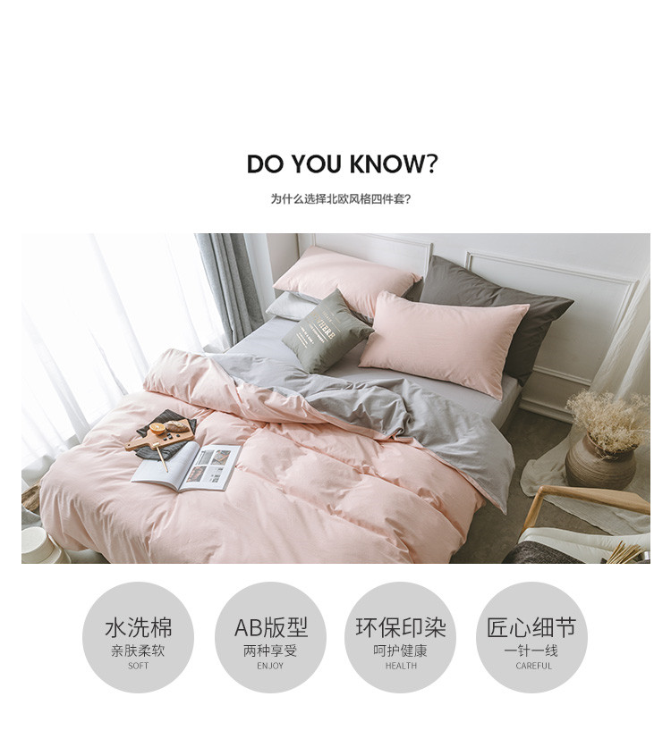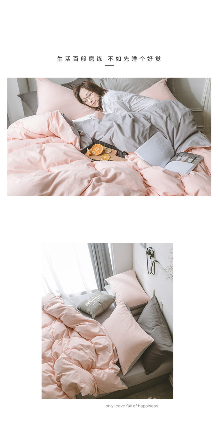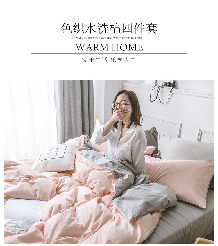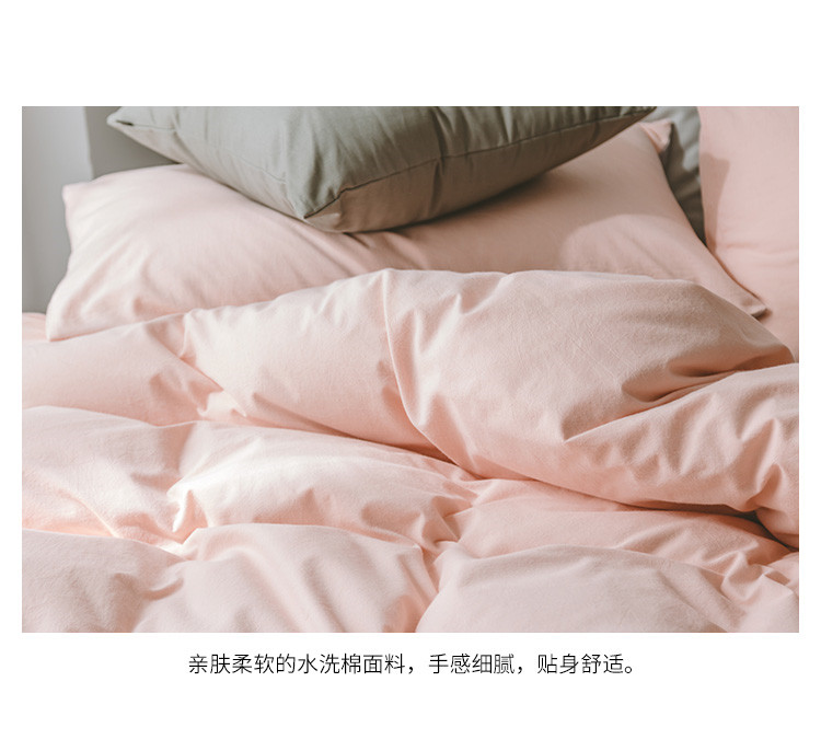 商品名称:早春全棉色织水洗套件模特图全棉浅粉
