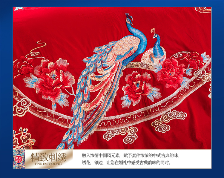 千禧 2024新款贡缎磨毛婚庆绣花多件套 盛世华庭(彩色绣),盛世华庭(彩色绣)