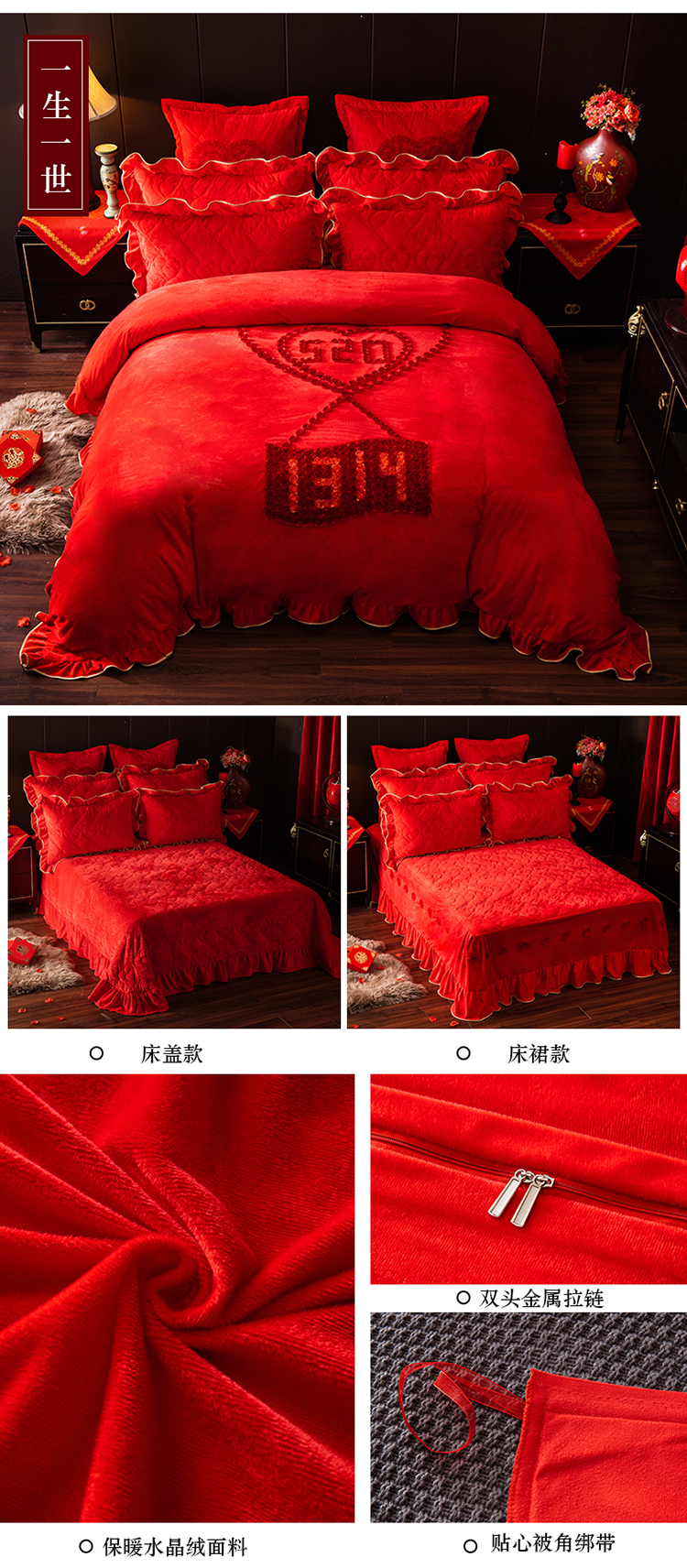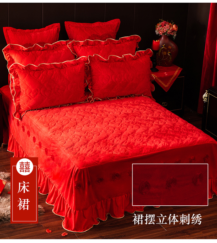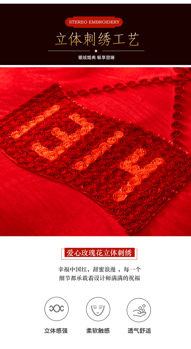 当前位置: 91家纺网 > 商品网购 > 床品套件 > 四件套 > 婚庆四件套 > 宜凡家纺 2019加厚水晶绒刺绣婚庆套件 一生一世