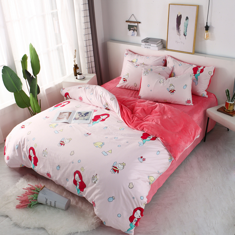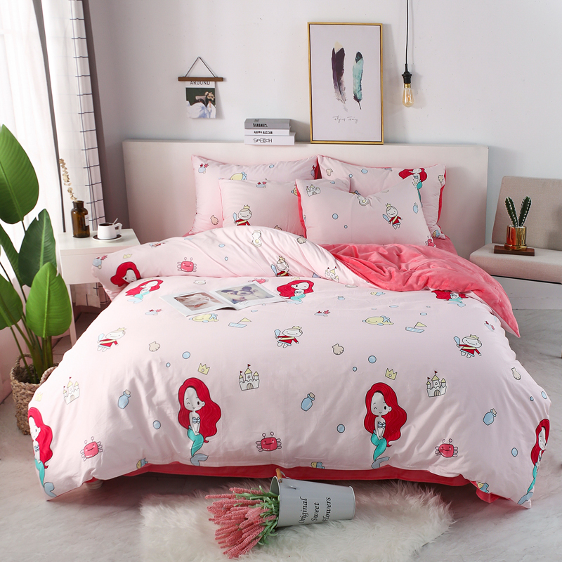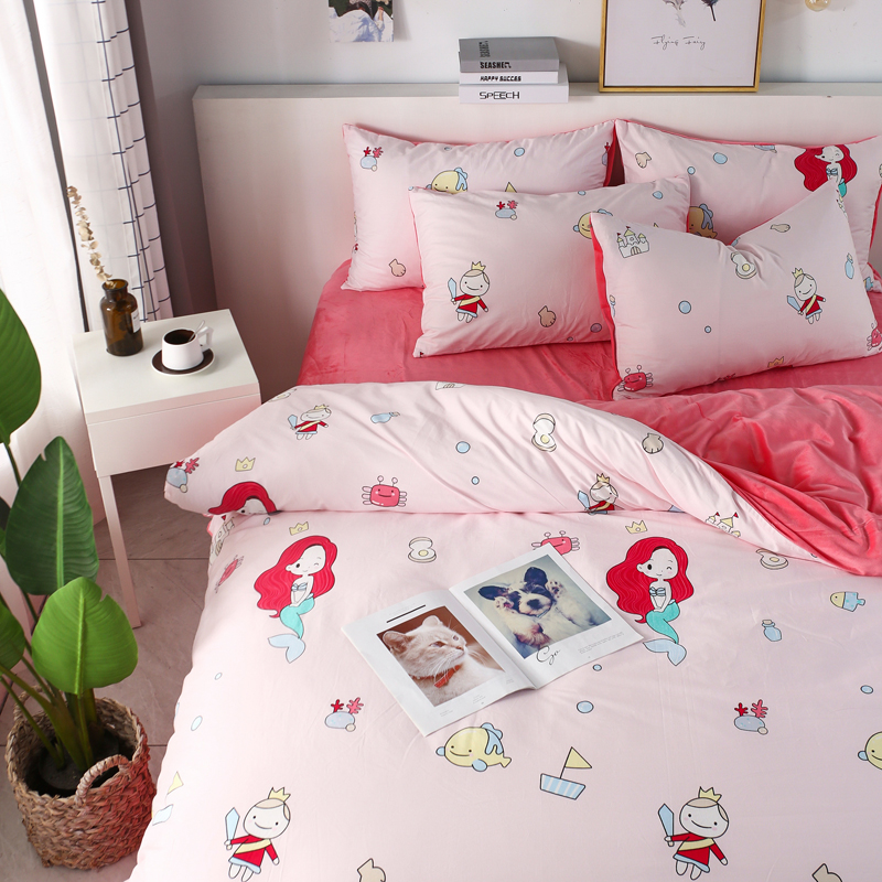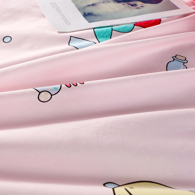 一米阳光 2019新款A棉B纯色绒四件套 美人鱼