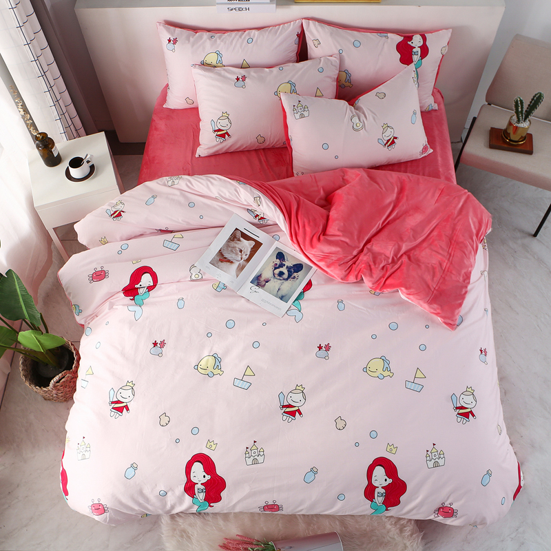 商品名称:一米阳光 2019新款A棉B纯色绒四件套 美人鱼