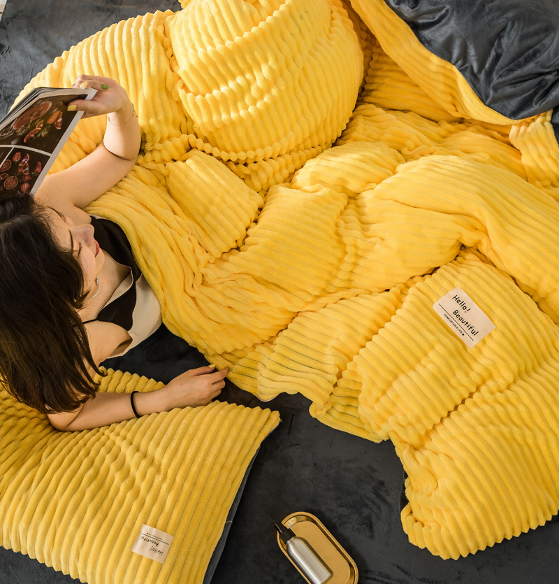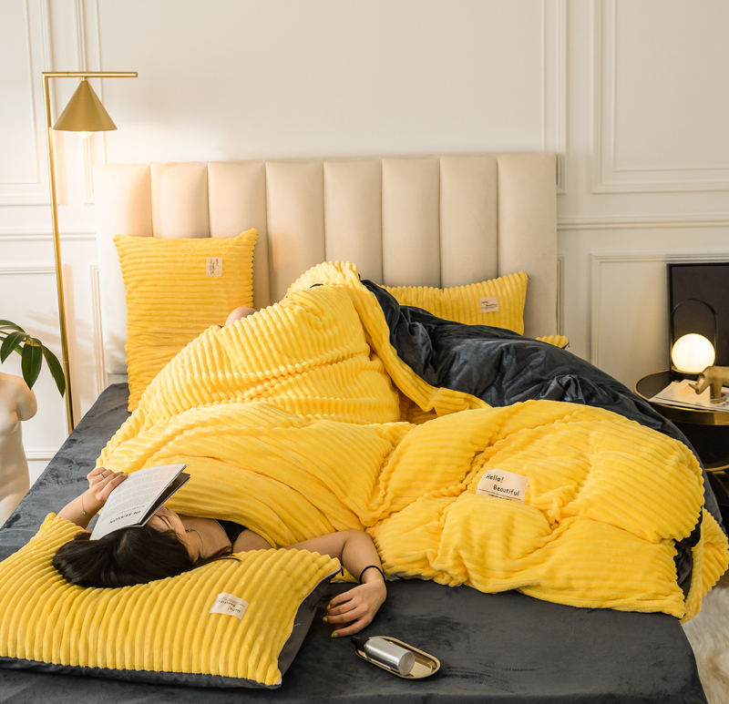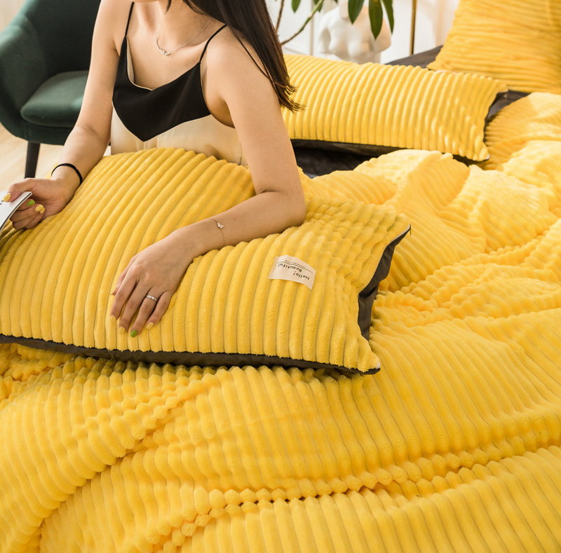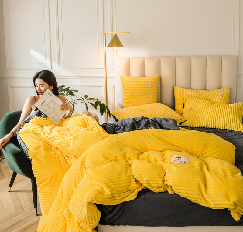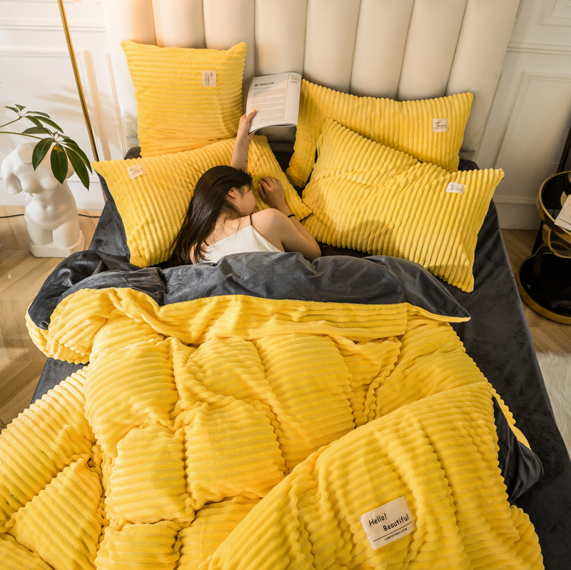 商品名称:澳洲羽 加厚魔法绒水晶绒法莱绒宝宝绒魔幻绒四件套 柠檬黄