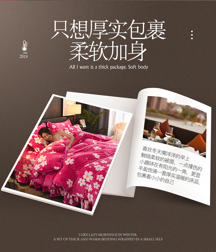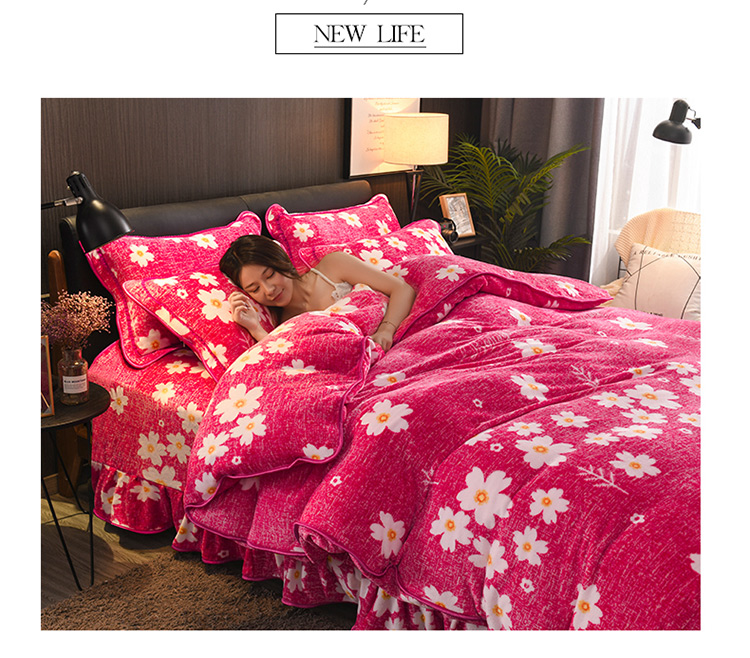 新品貂狐绒牛奶绒金貂绒四件套水晶绒床裙款抗静电包边法莱绒套件