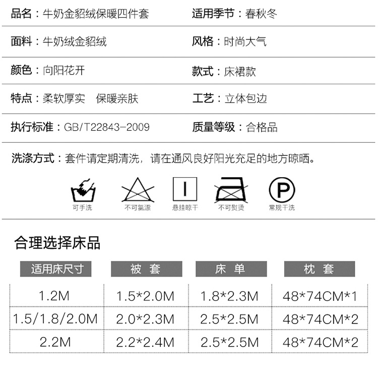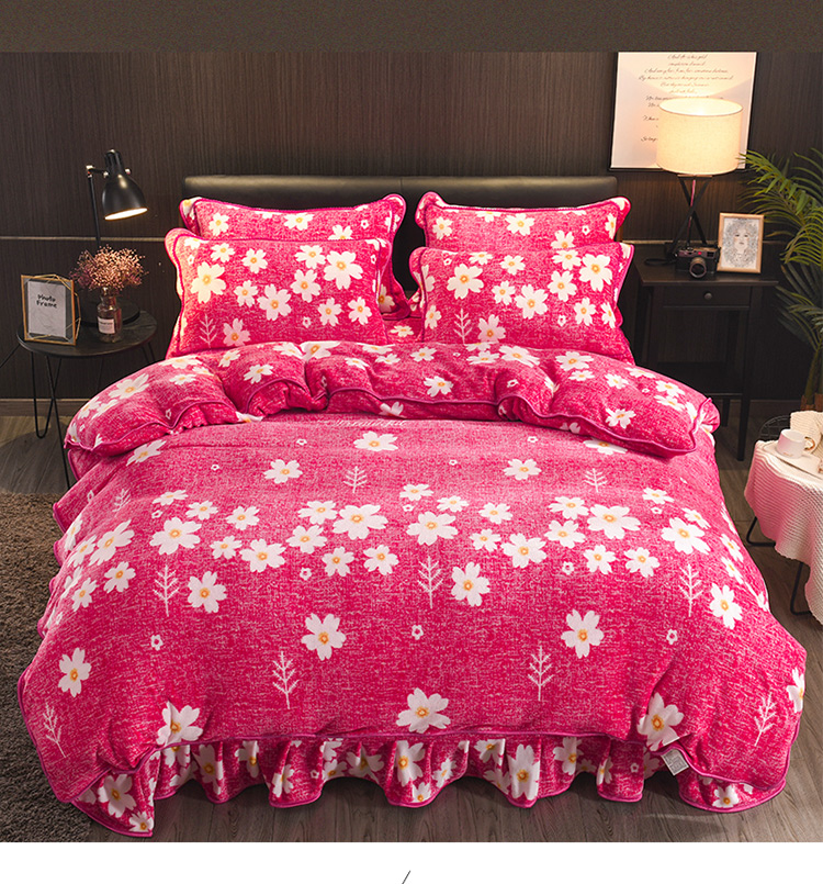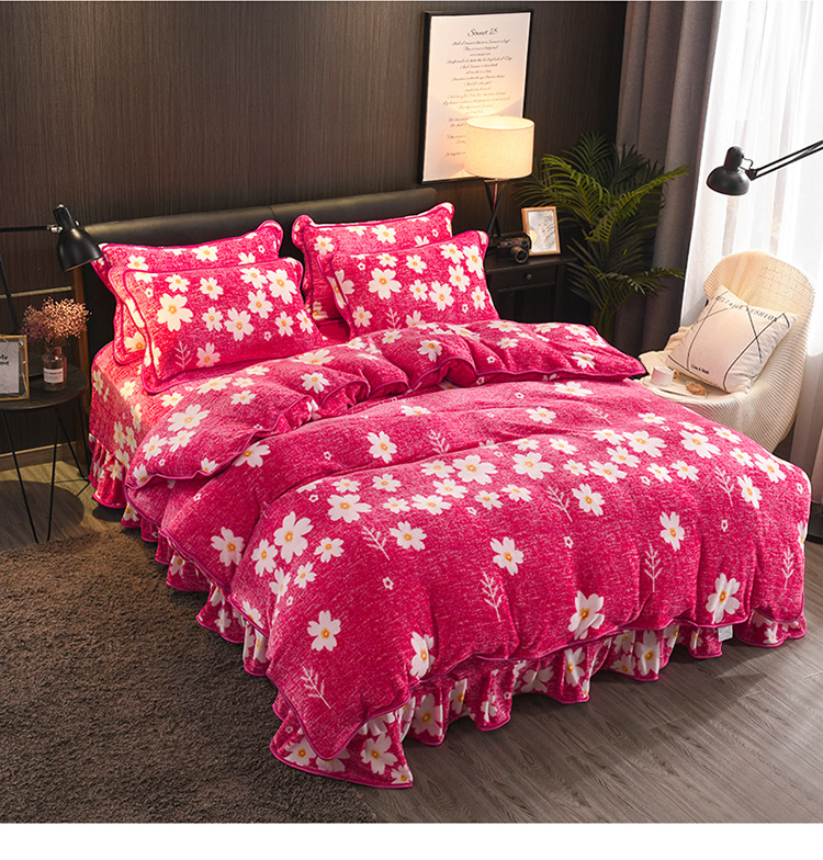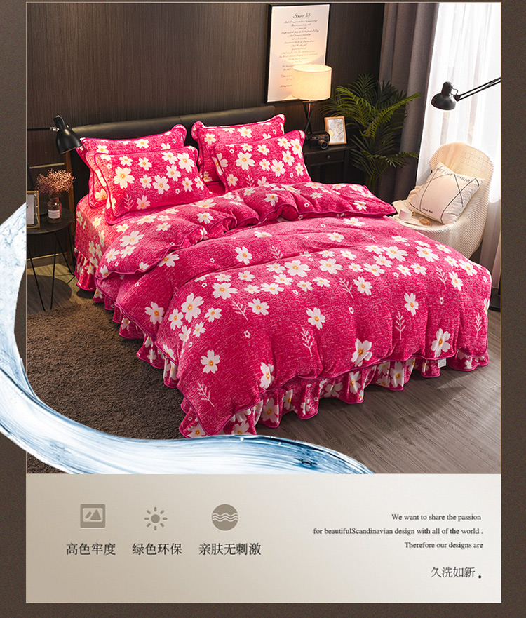 商品名称:新品貂狐绒牛奶绒金貂绒四件套水晶绒床裙款抗静电包边法莱绒套件