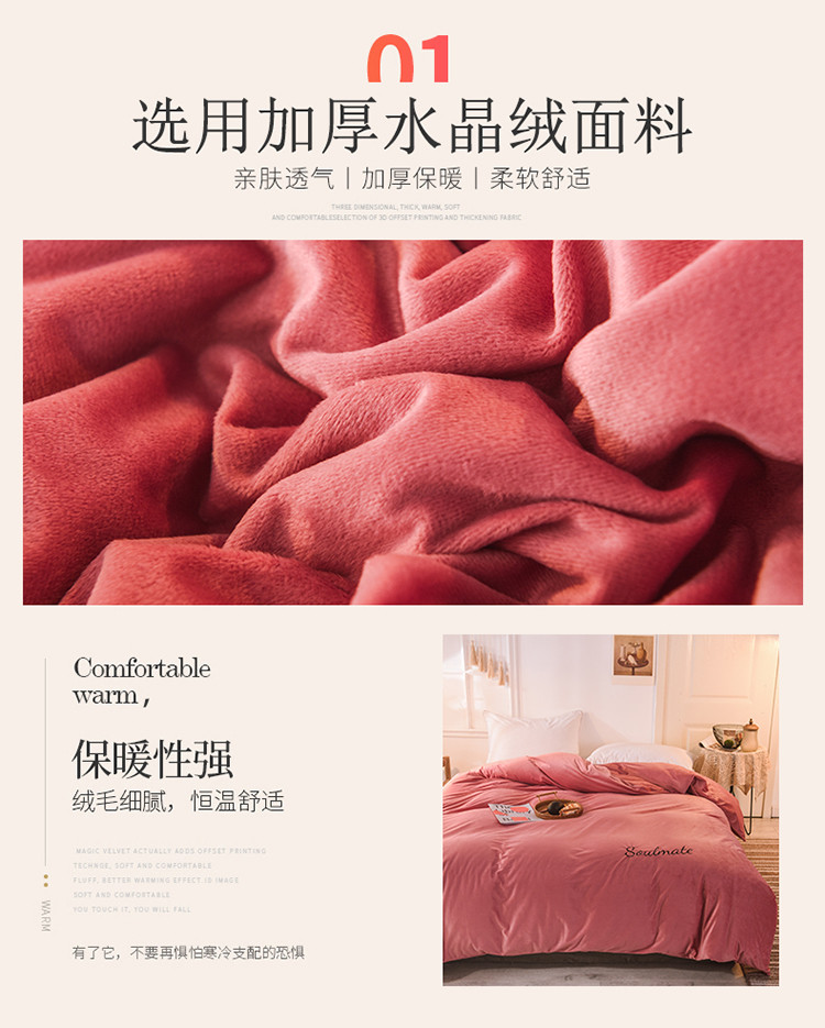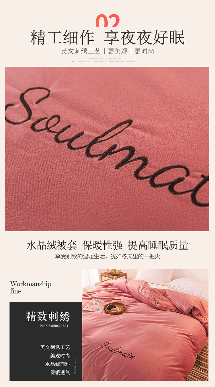 (总)恩和家纺2024新款宝宝绒刺绣单品被套,宝蓝,豆沙,红玉,酒红,蓝紫,浅米灰,水影蓝,驼色,香芋紫,烟灰