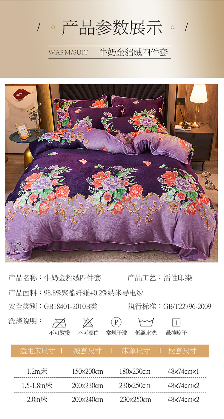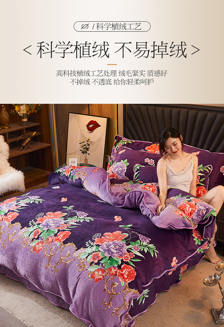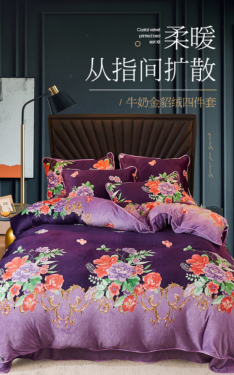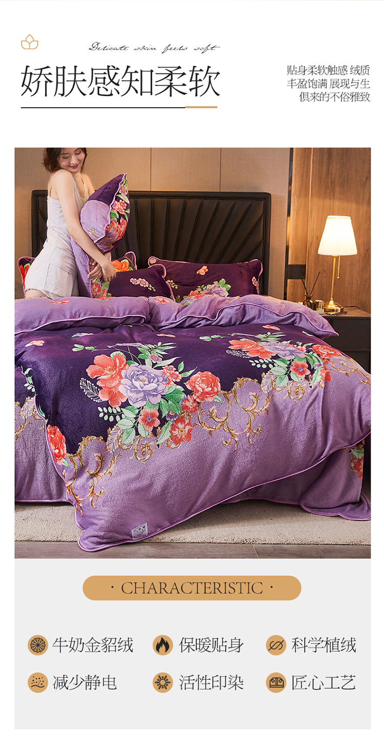 商品名称:迷仙巢 2020新款牛奶金貂绒四件套 一枝独秀