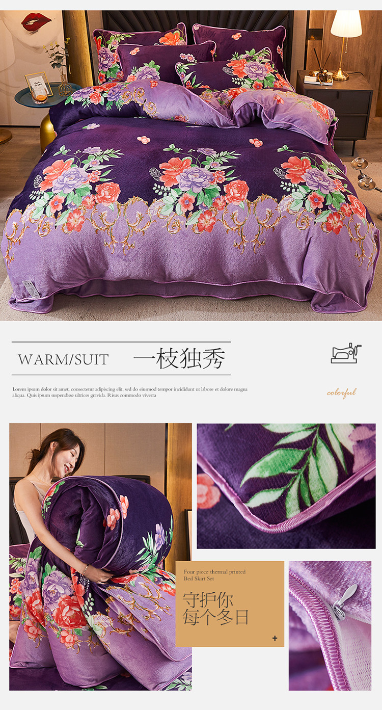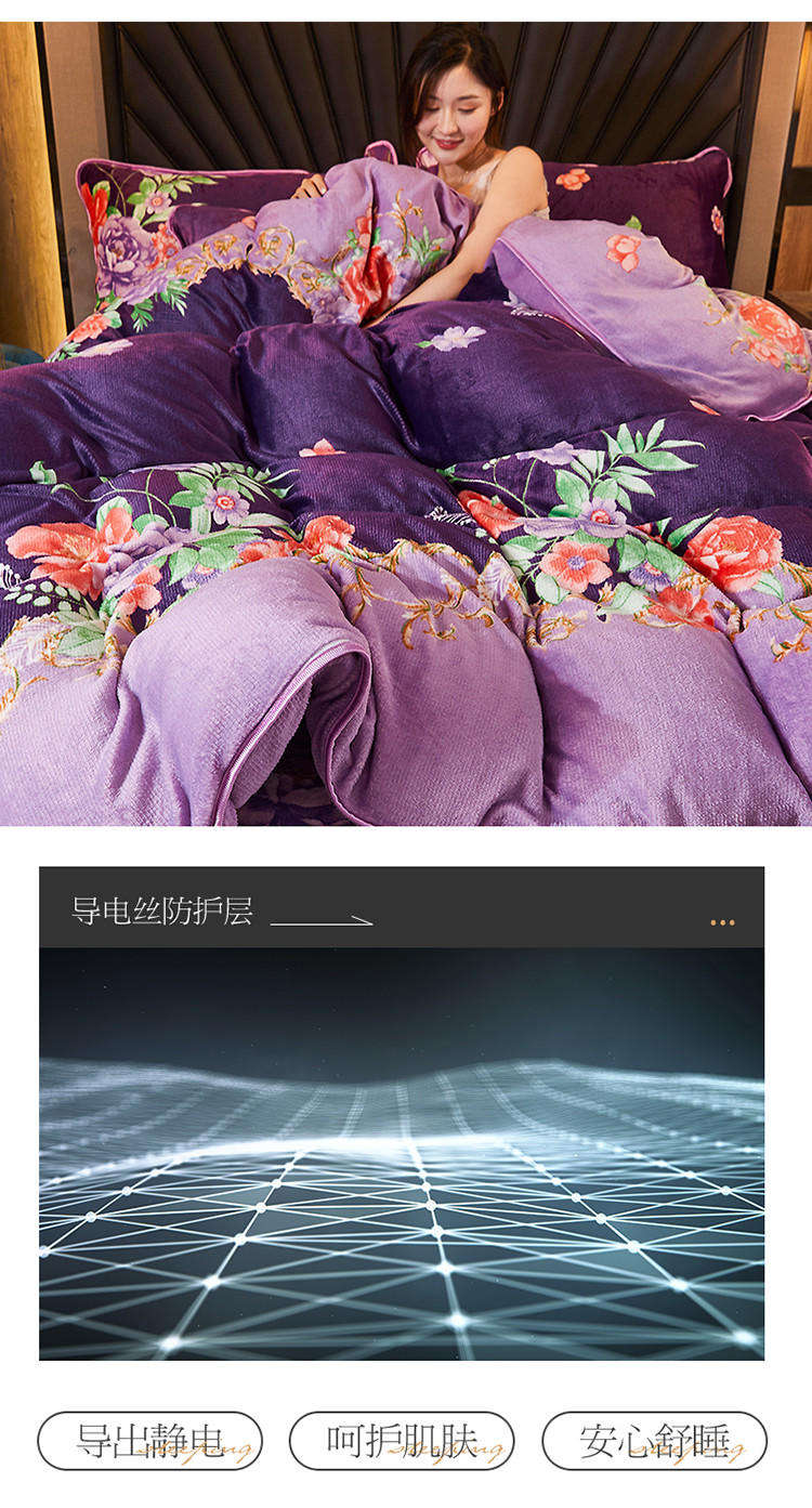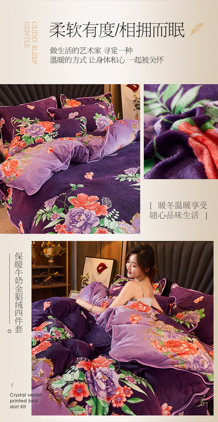 商品名称:迷仙巢 2020新款牛奶金貂绒四件套 一枝独秀