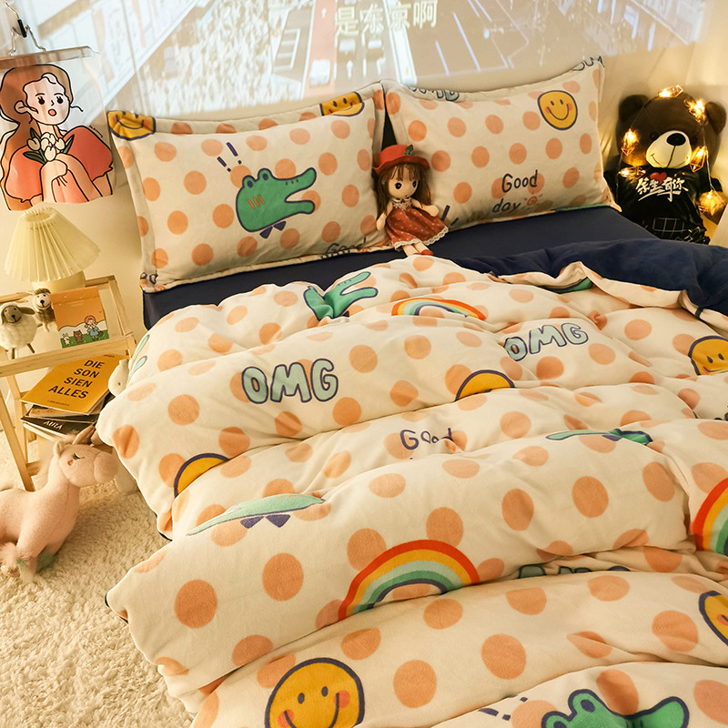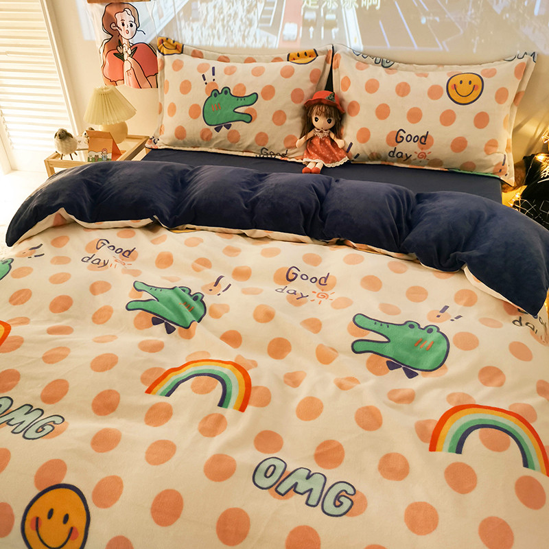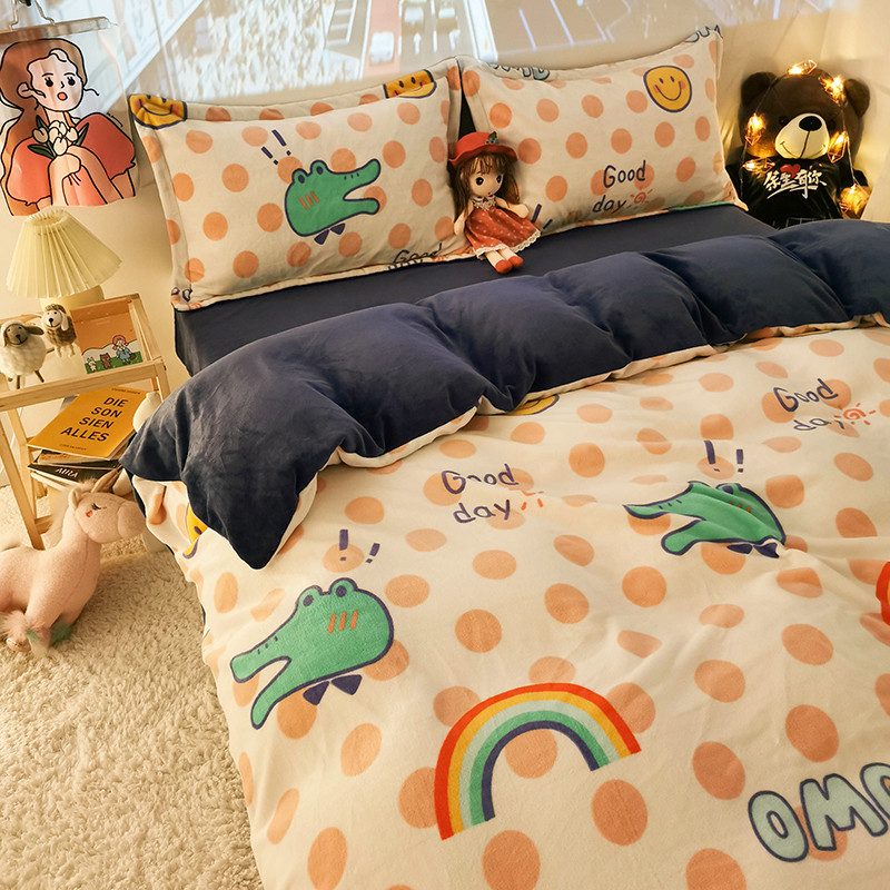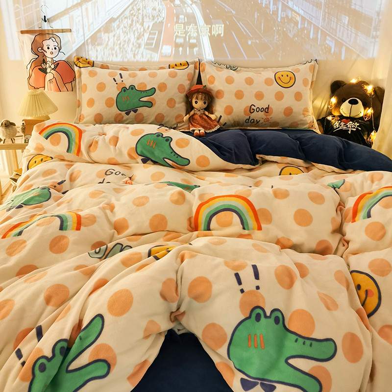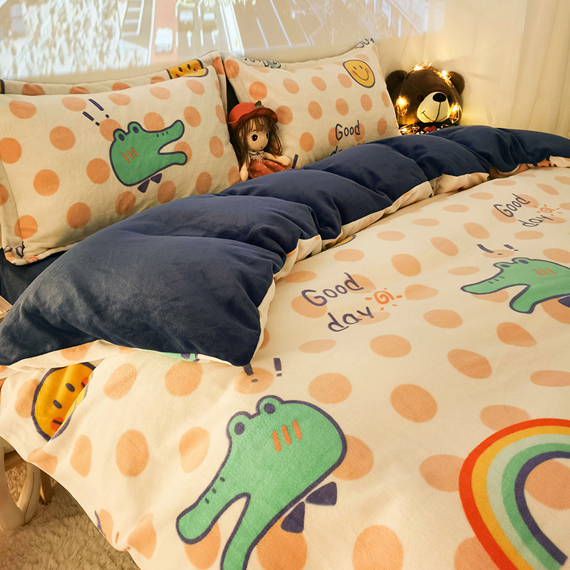 HL原创 2020新款牛奶绒四件套 小鳄鱼