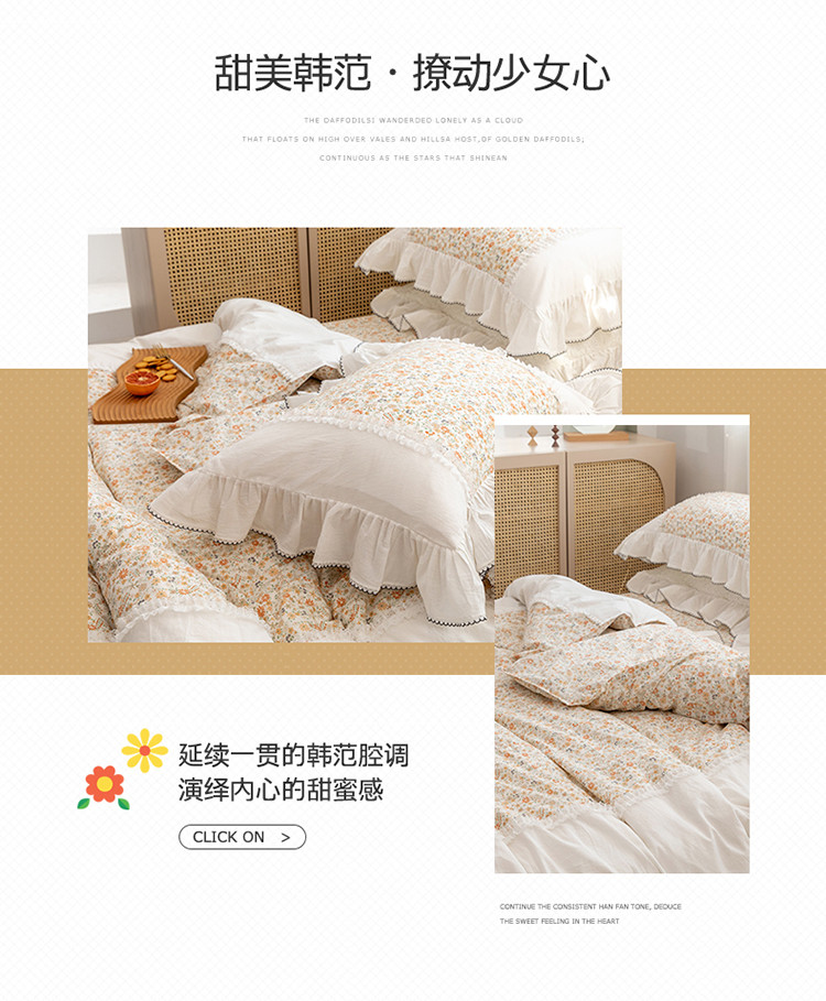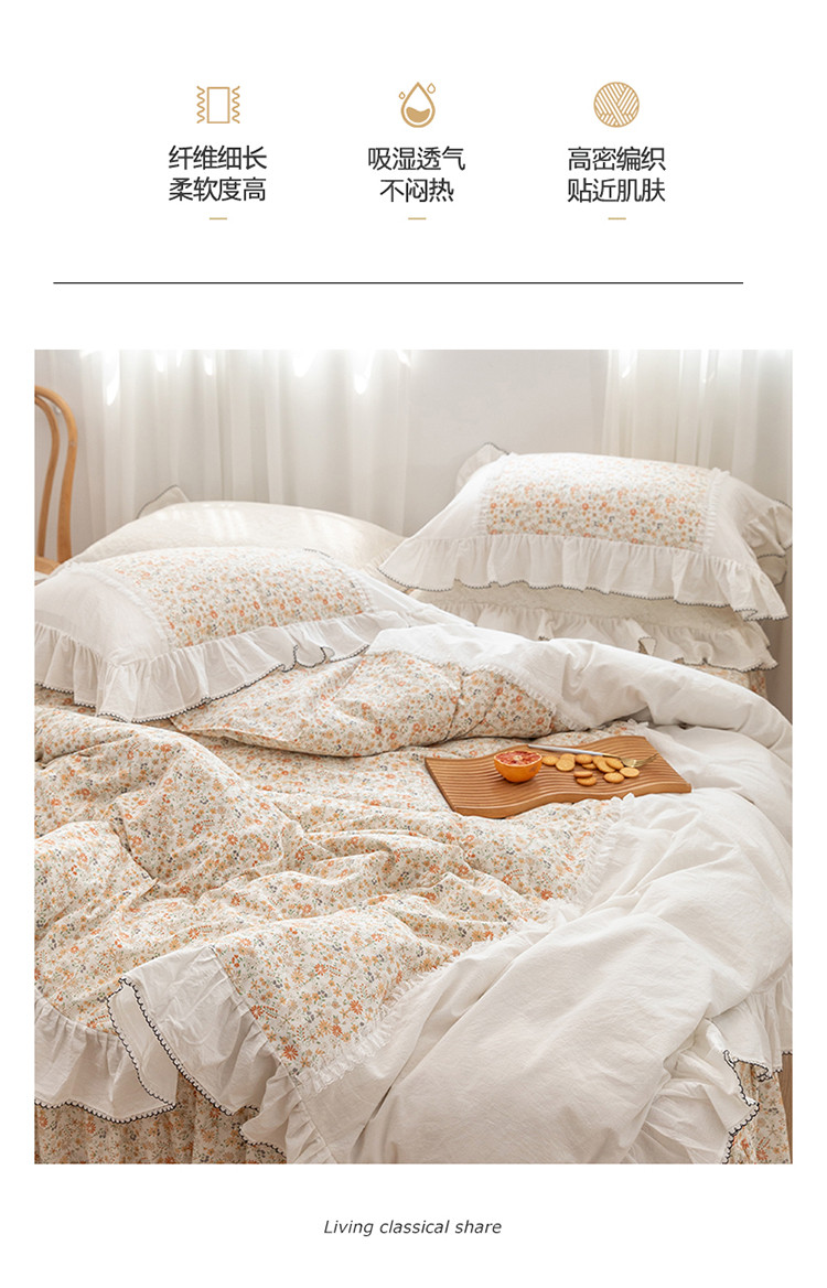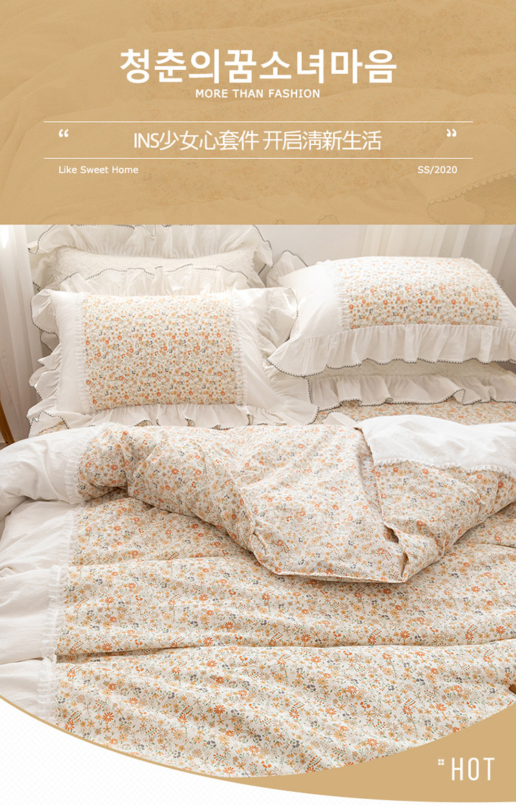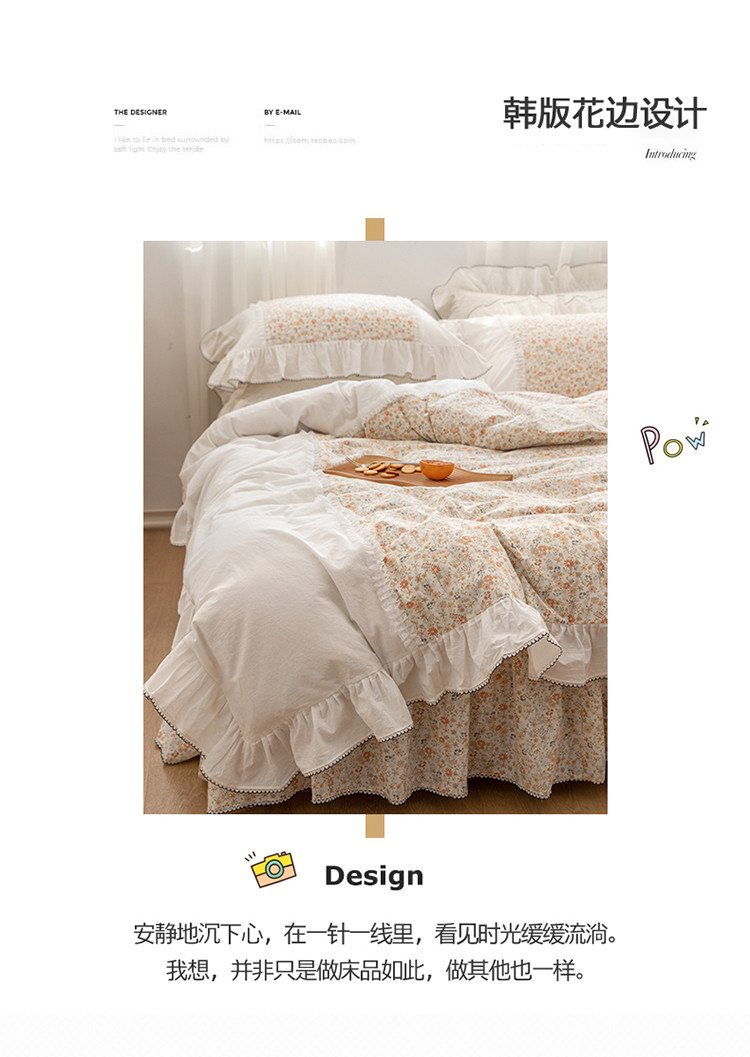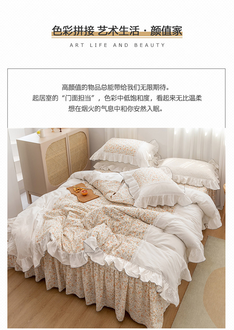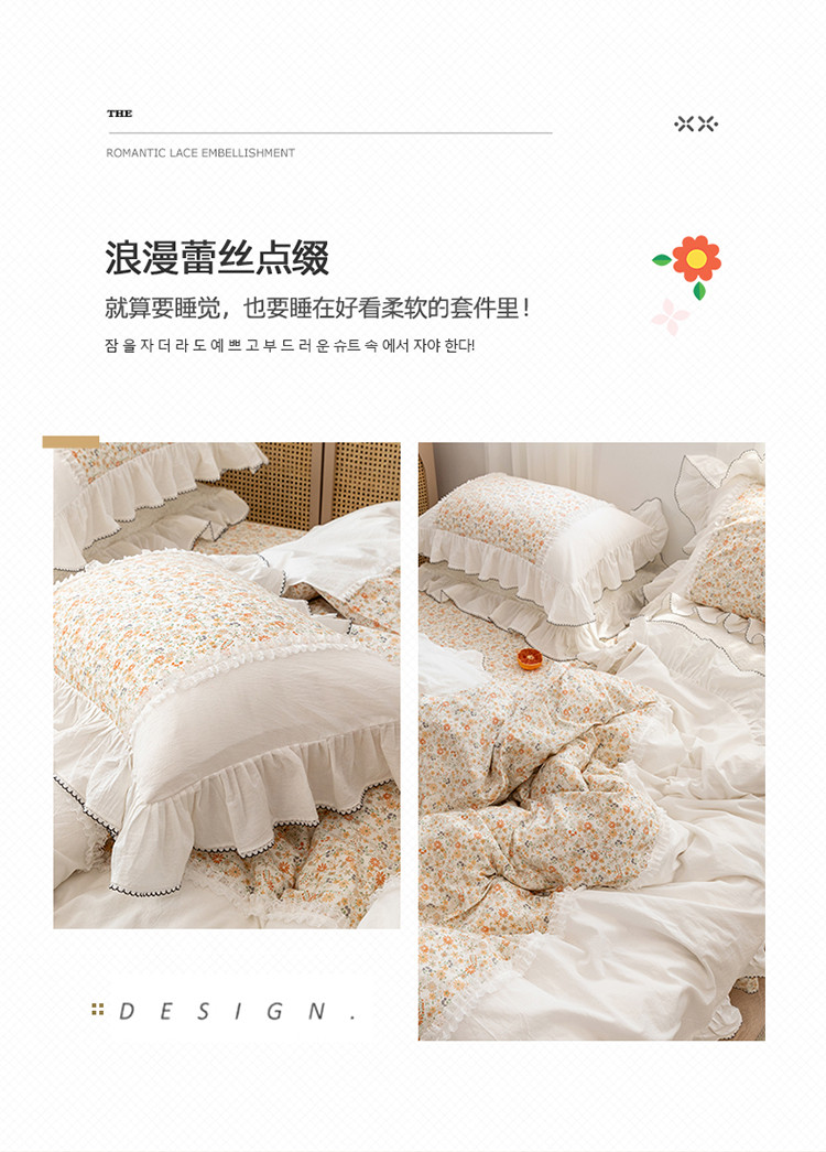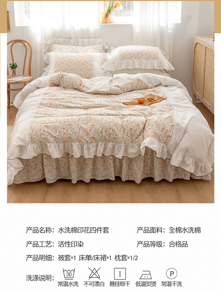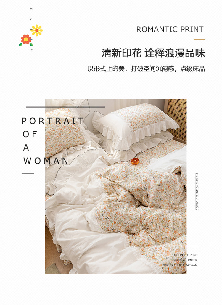 (总)婳庭 2020新款小碎花蕾丝边水洗棉印花四件套