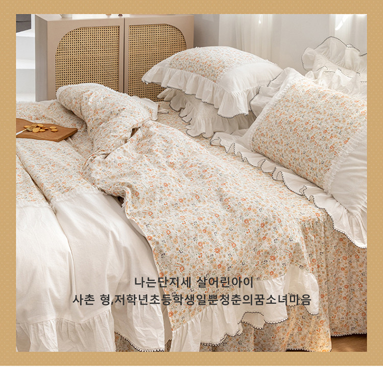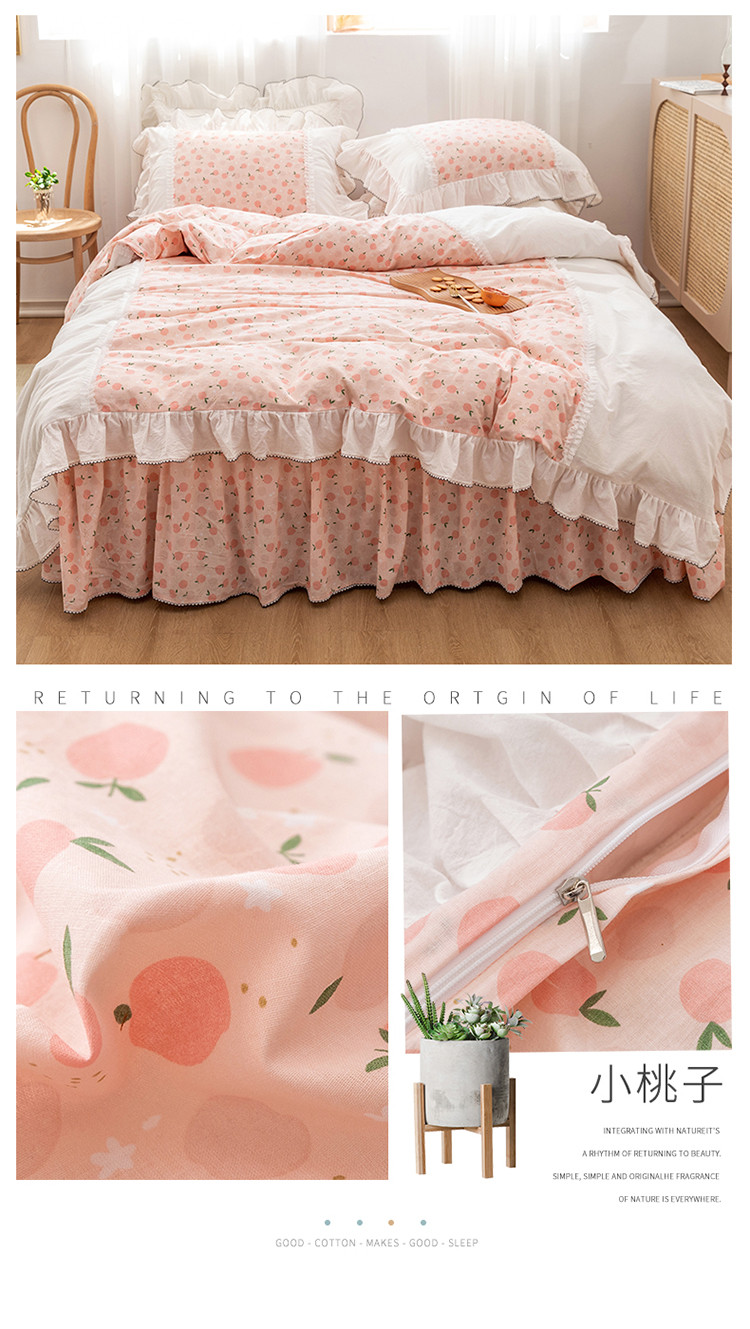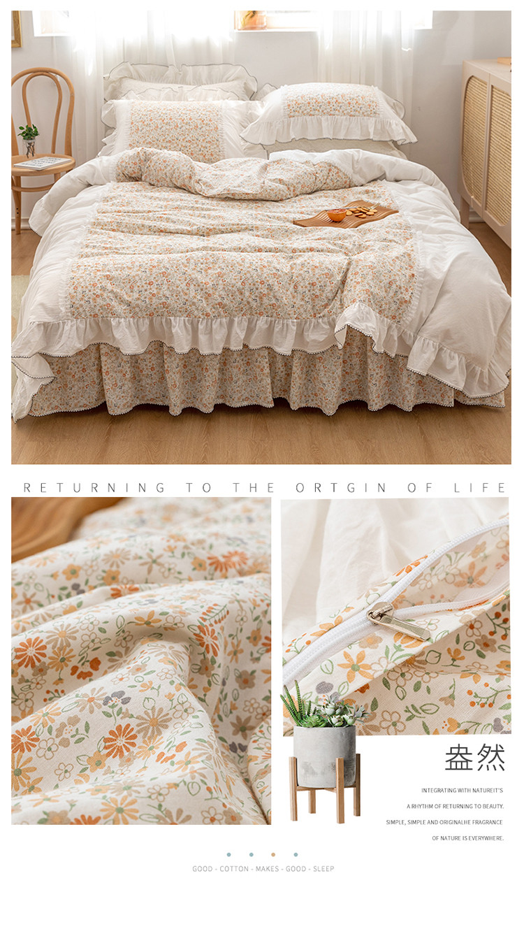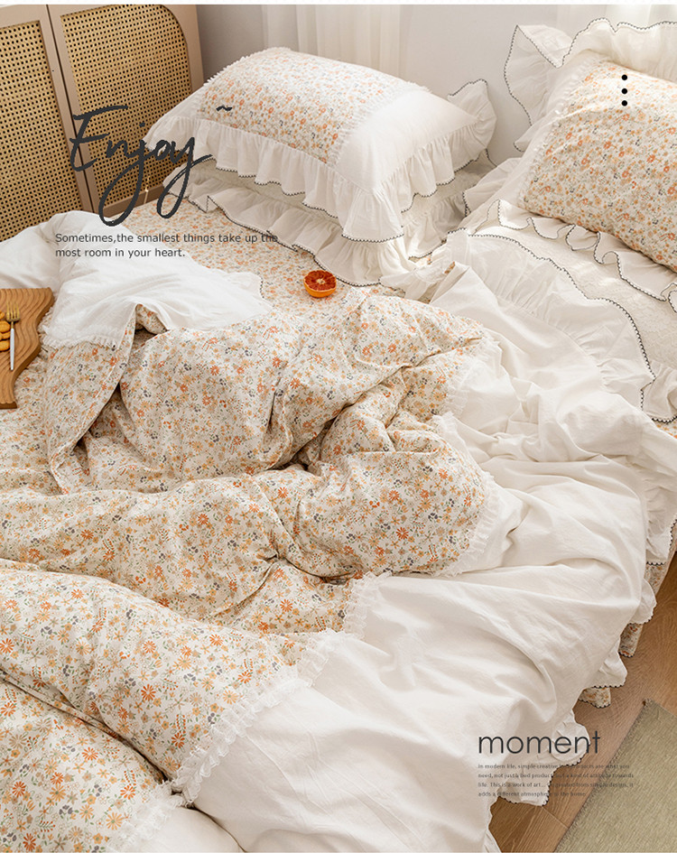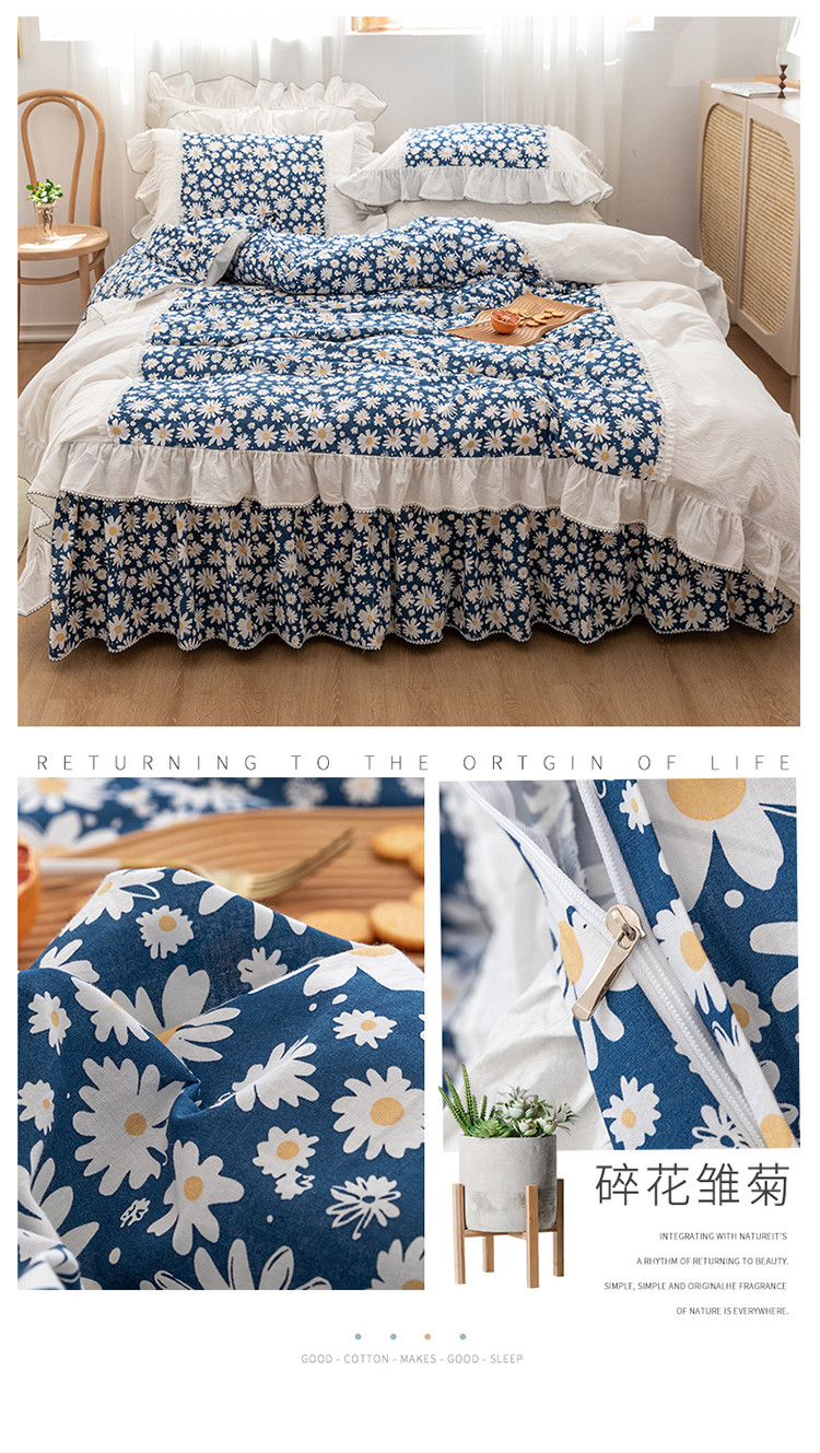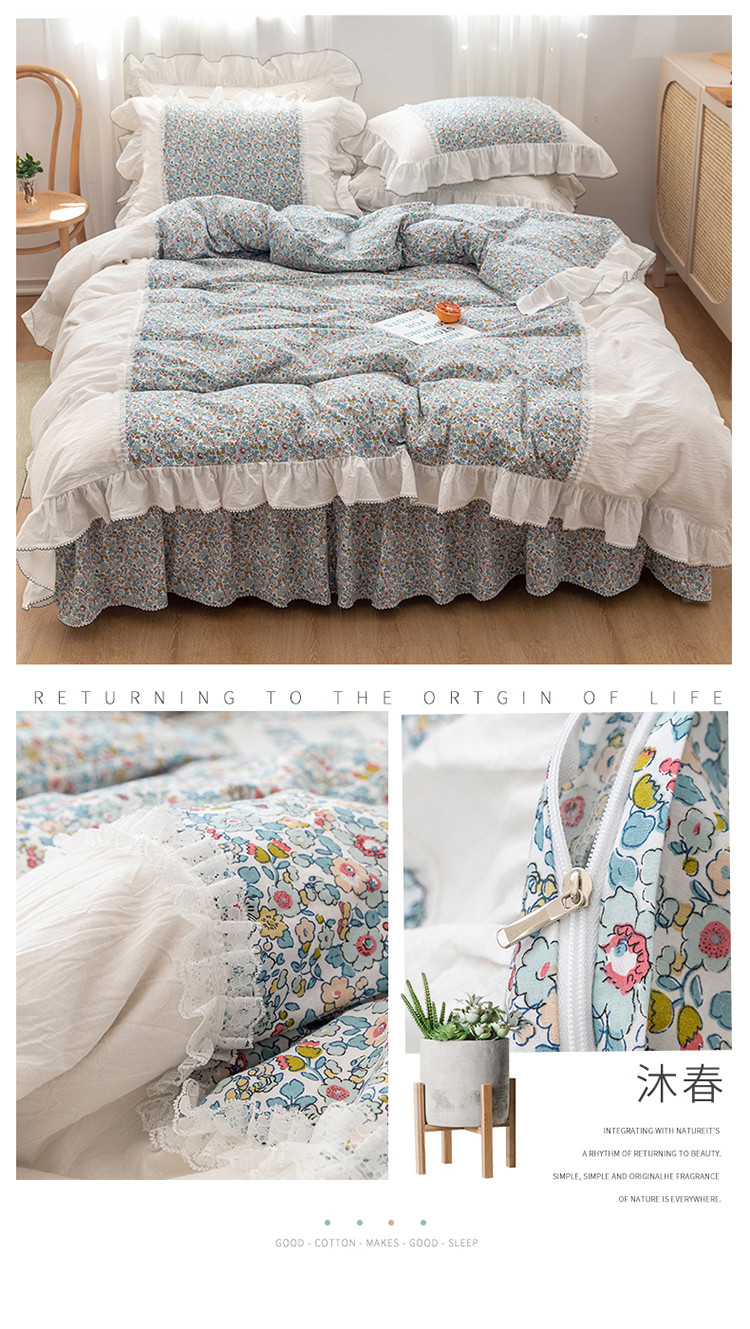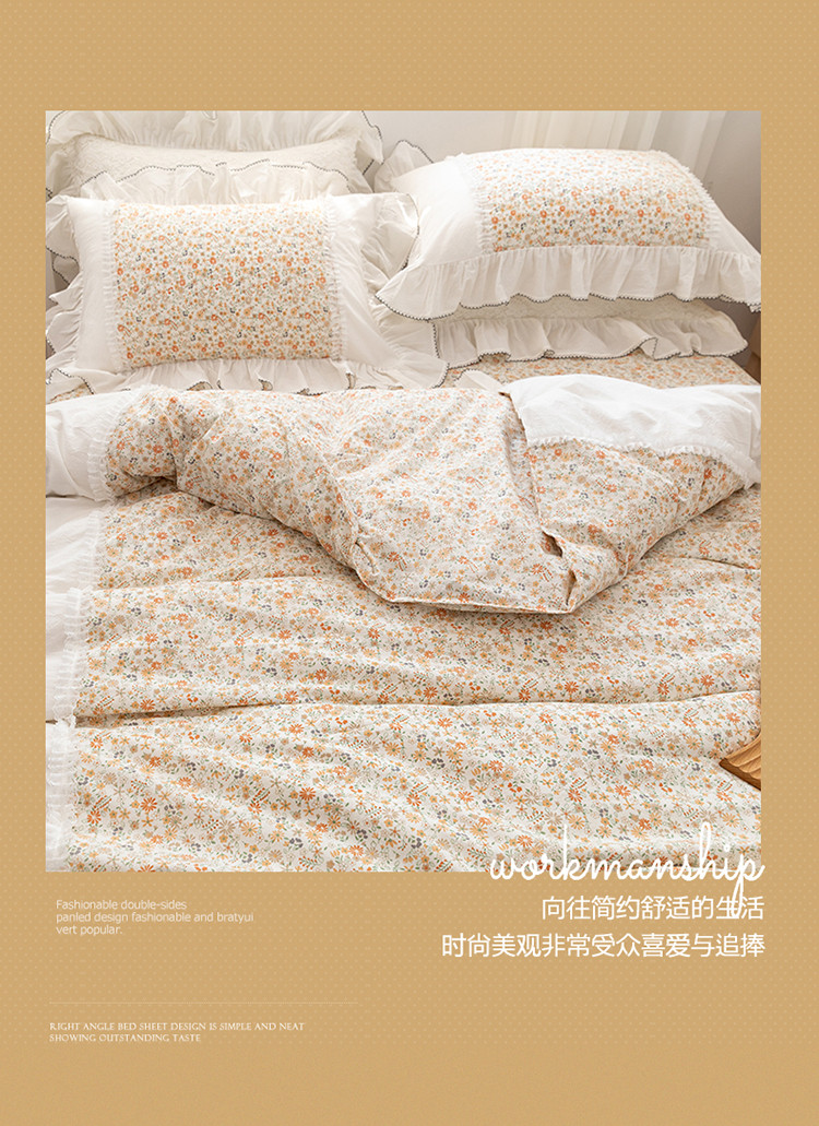 (总)婳庭 2020新款小碎花蕾丝边水洗棉印花四件套