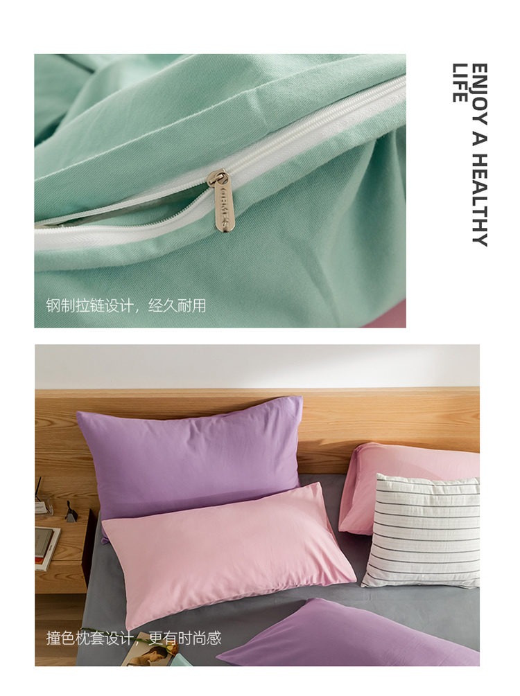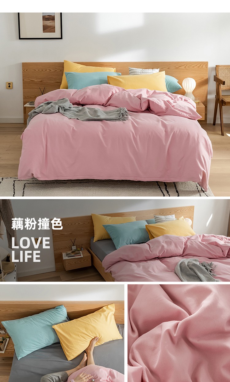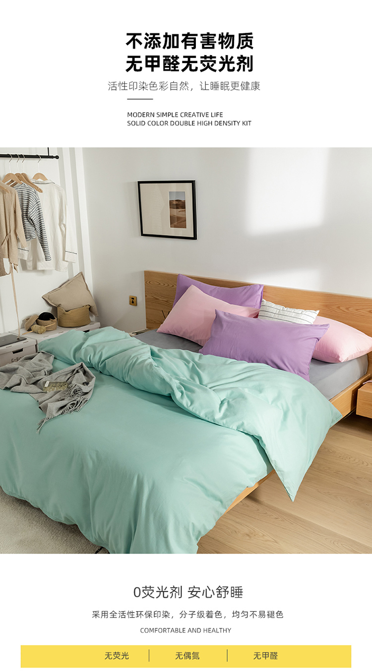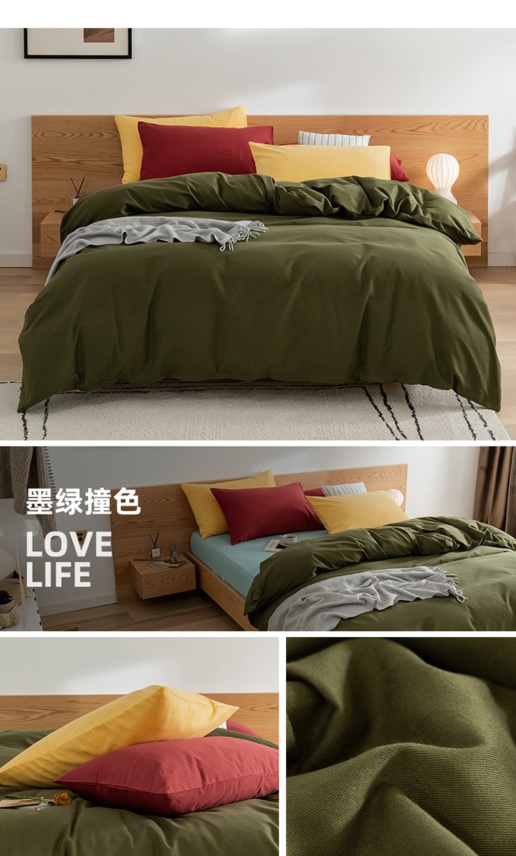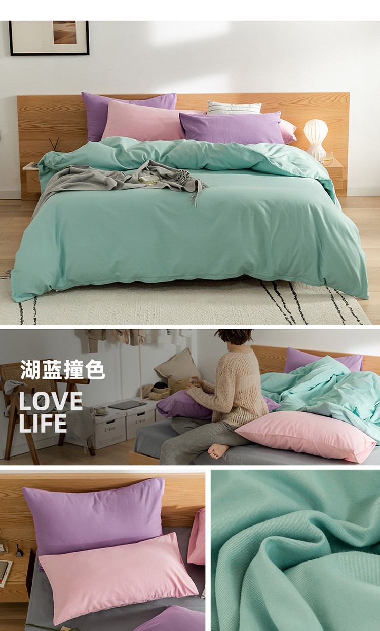 (总)窝米 2022夏季新品素色双拼水洗棉四件套,艾青双拼,冰莓粉双拼,绿云双拼,抹茶绿双拼,少女粉双拼,神仙紫双拼,雾霾蓝双拼,芝士双拼