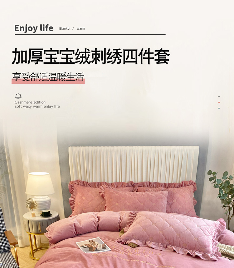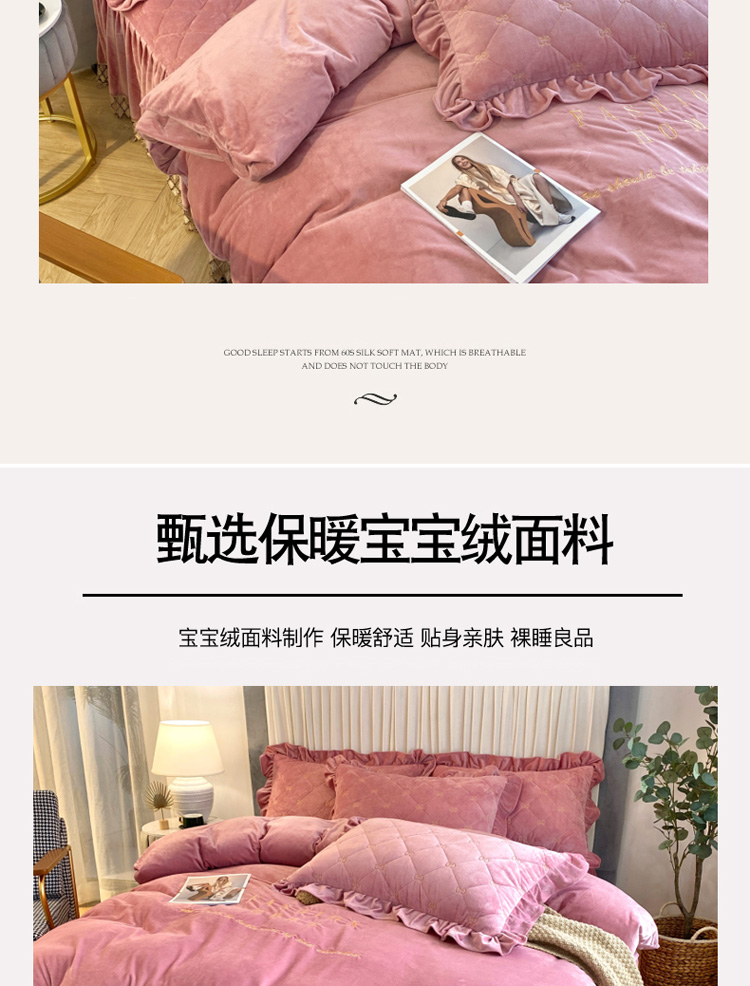 当前位置: 91家纺网 > 商品网购 > 床品套件 > 四件套 > 宝宝绒四件套 > 星尚家纺 2020新款宝宝绒夹棉床裙床盖四件套吉吉梦- 藕粉