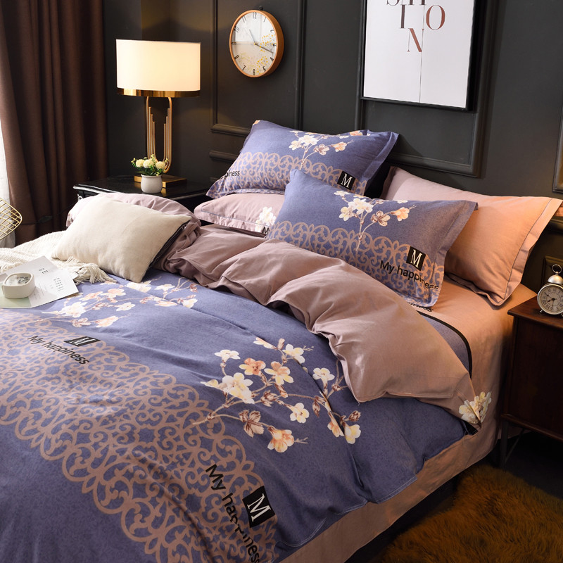 商品名称:威布斯 2021新款全棉加厚磨毛四件套 芳菲时光-蓝