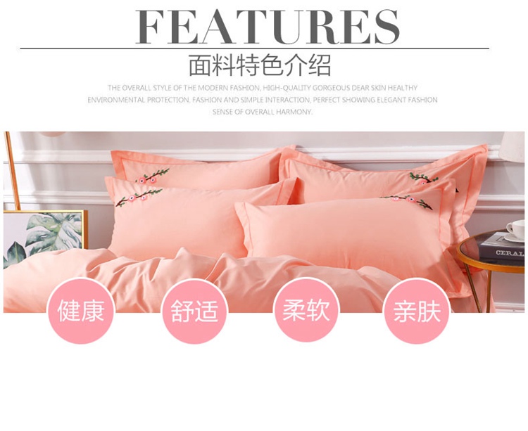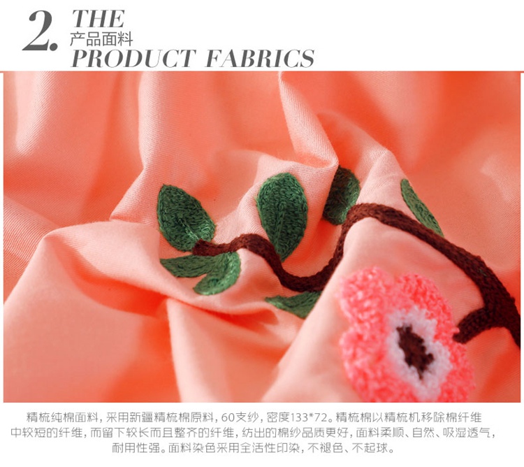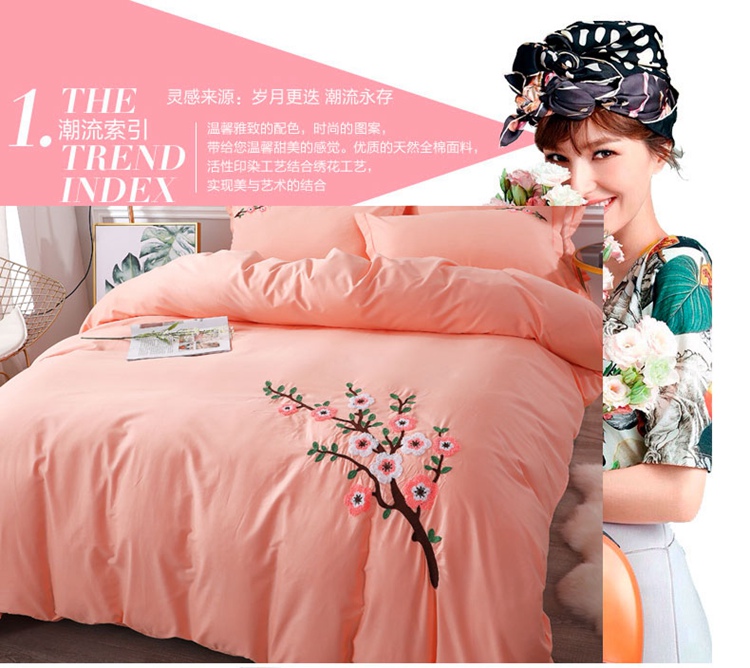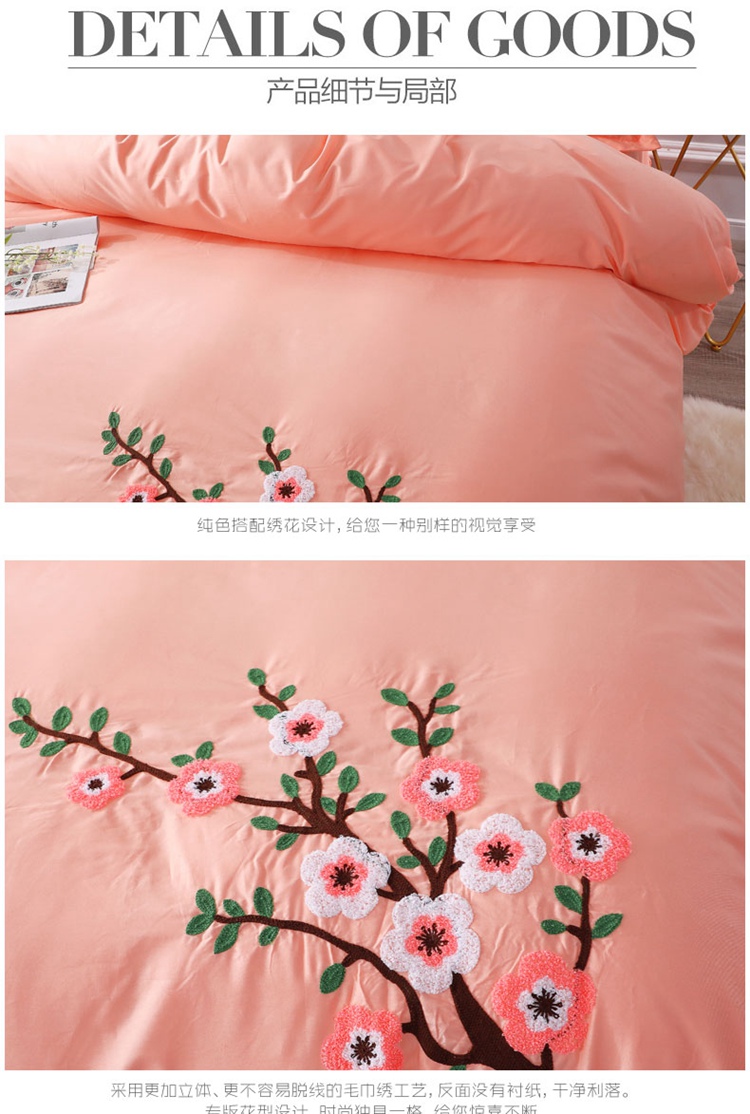 商品名称:2021新款全棉13372毛巾绣纯棉刺绣花四件套桃花朵朵玉色