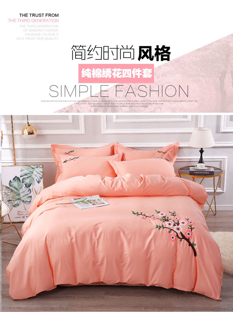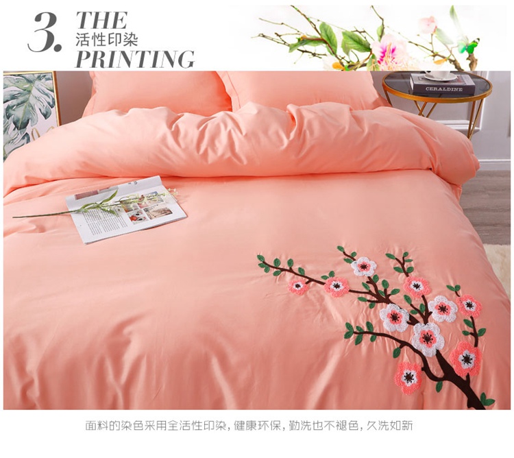 2021新款全棉13372毛巾绣纯棉刺绣花四件套桃花朵朵玉色