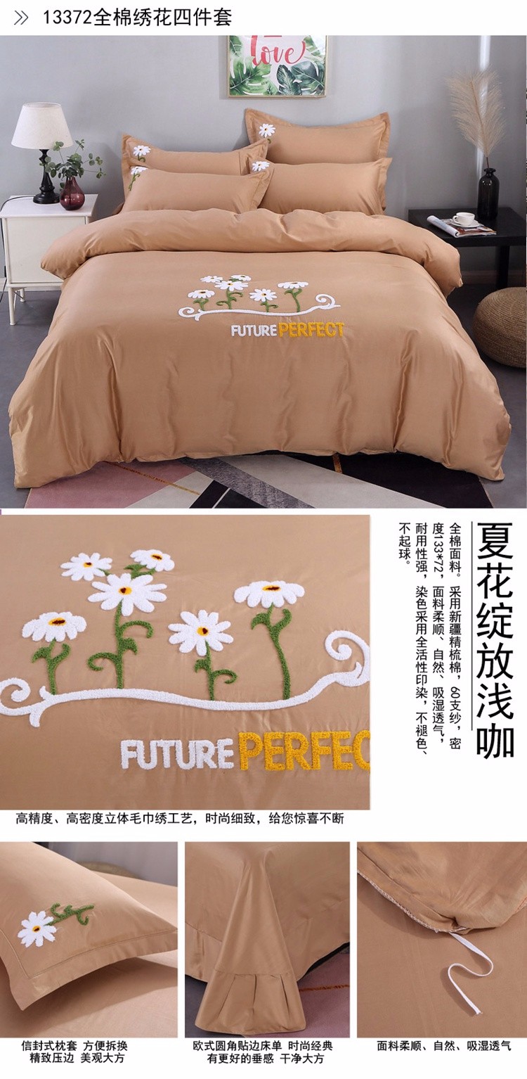 商品名称:2021新款全棉13372毛巾绣纯棉刺绣花四件套夏花绽放浅咖