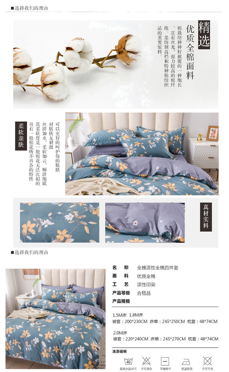 商品名称:星期三 2021新款花卉系列全棉13372四件套(加老板微信有会员价) 秋水伊人