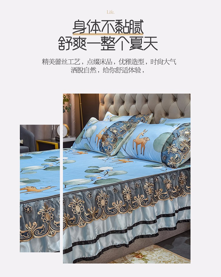 ds生活馆 2021新款欧式床裙款冰丝席凉席 森林奇境