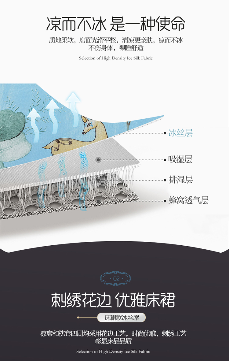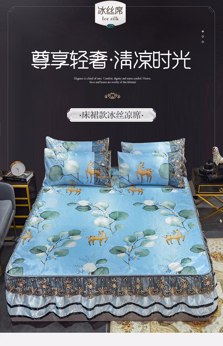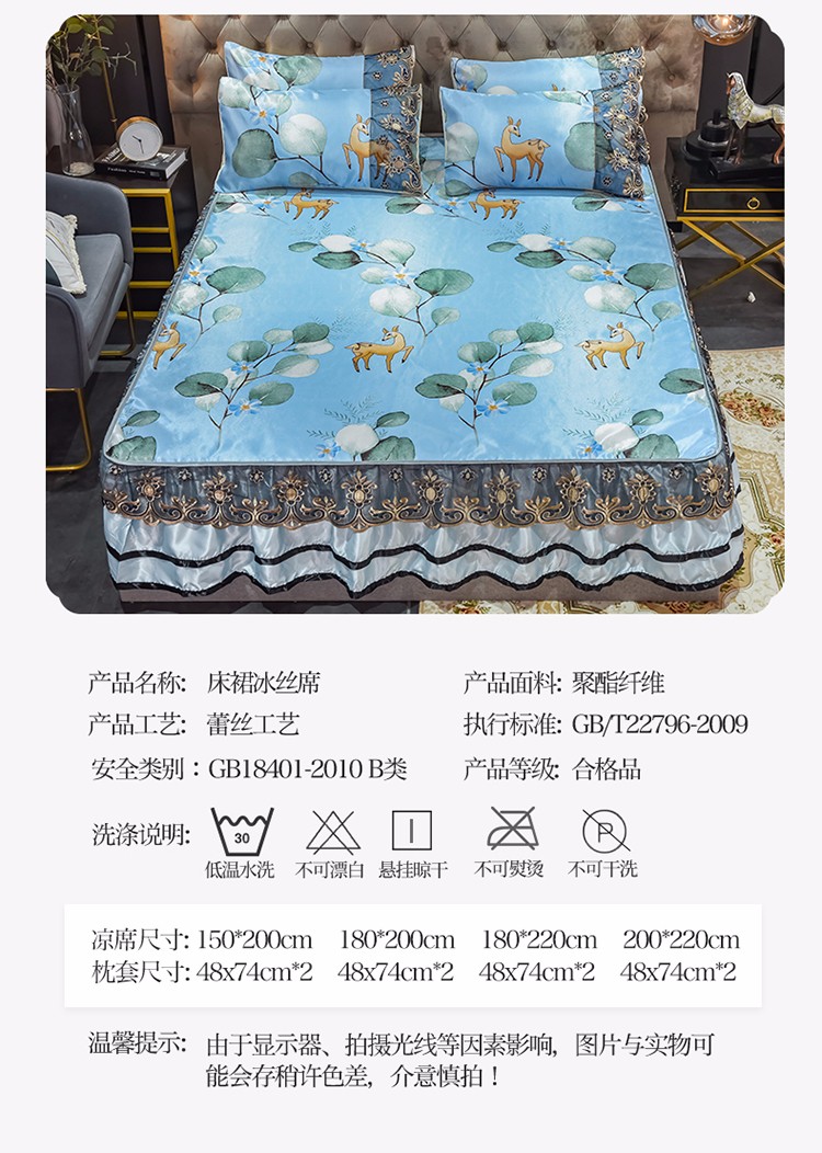 商品名称:ds生活馆 2021新款欧式床裙款冰丝席凉席 森林奇境