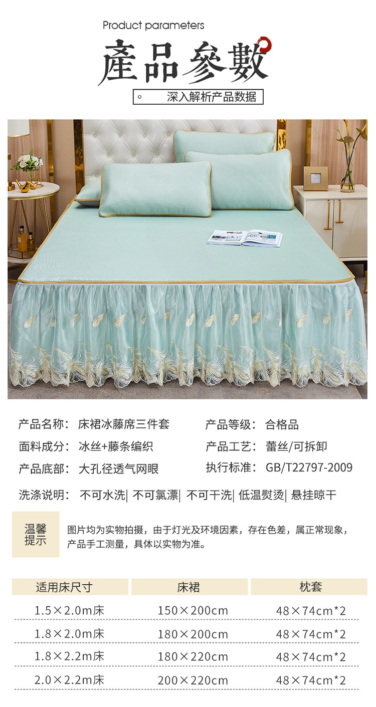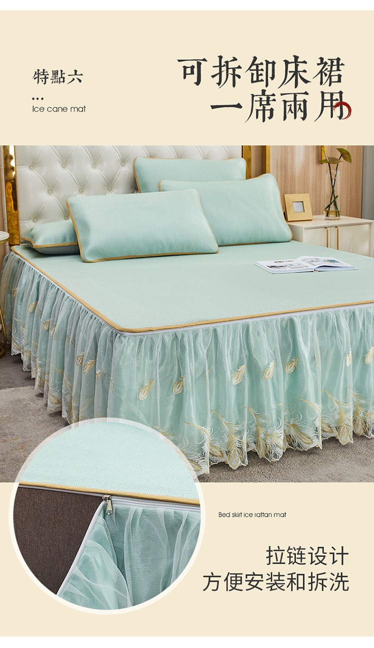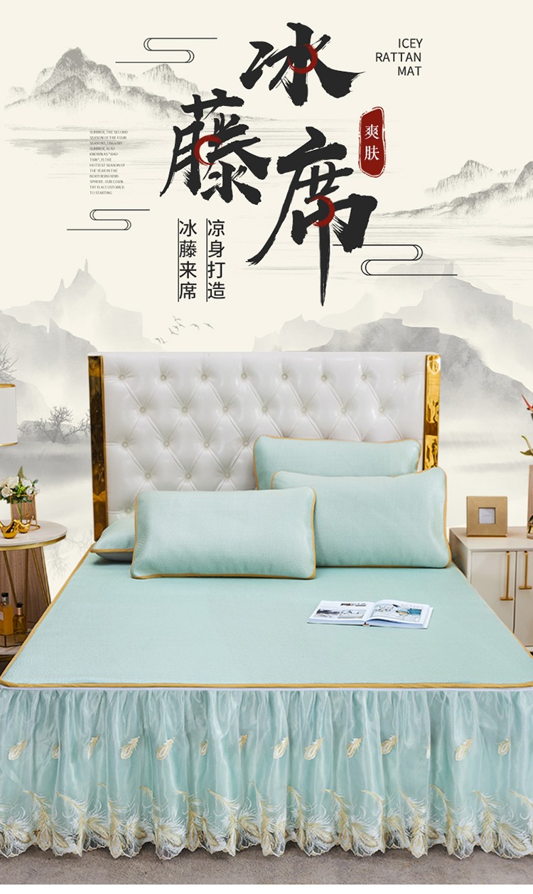 商品名称:网红馆 2025新款蕾丝花边宽边冰藤席 碧水兰