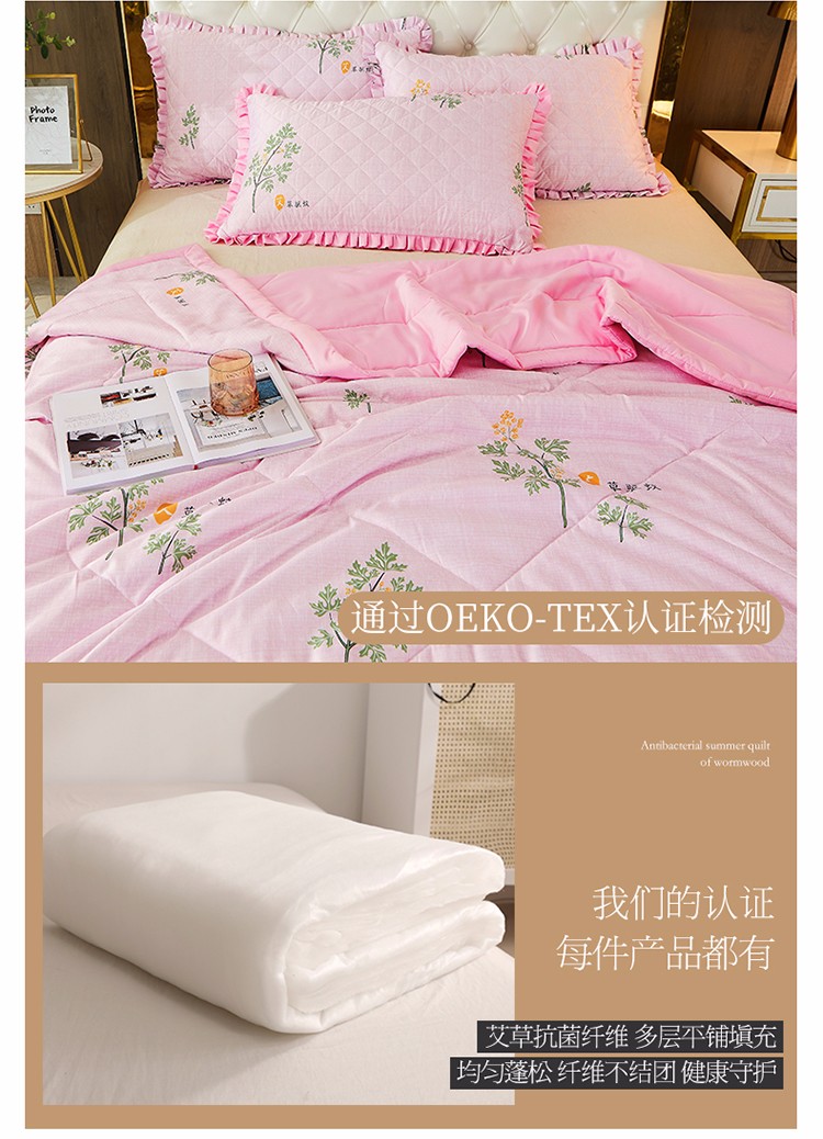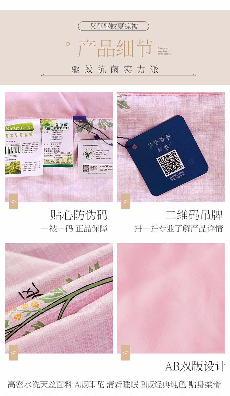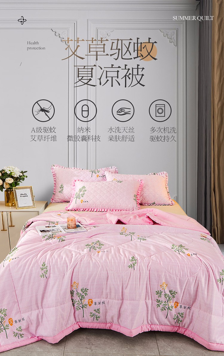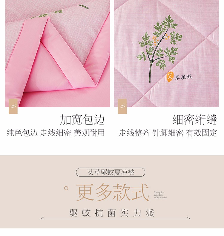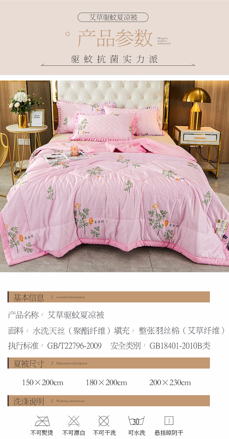 商品名称:情恒家纺 2025新款艾草驱蚊抗菌夏凉被 清新粉