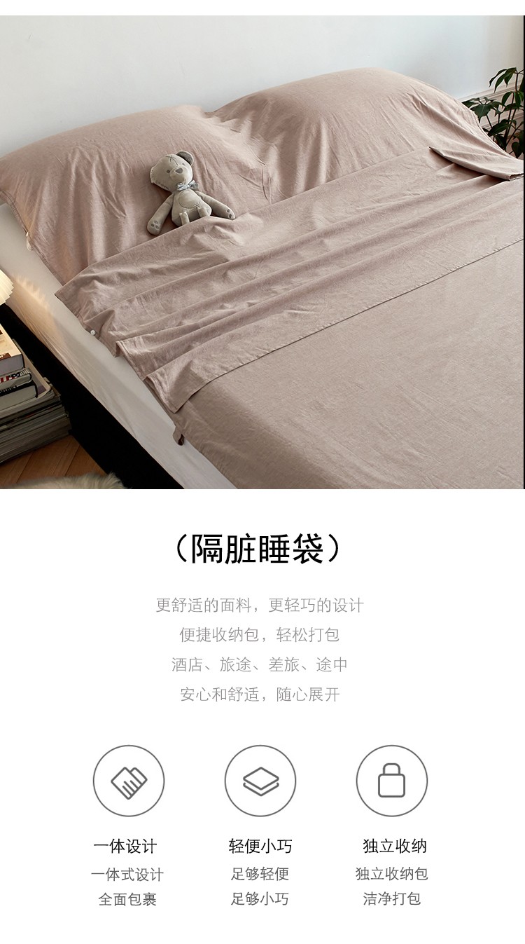 无印色织全棉水洗棉酒店隔脏睡袋便携式出差旅游行单双人床单被套