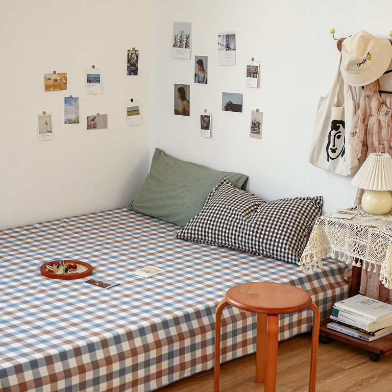 安莱生活 2021新款色织全棉水洗棉单床单 七彩蓝