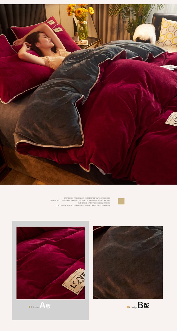 当前位置: 91家纺网 > 商品网购 > 床品套件 > 四件套 > 水晶绒四件套 > 推推 2025新款轻奢贴布绣水晶绒四件套 酒红+深灰