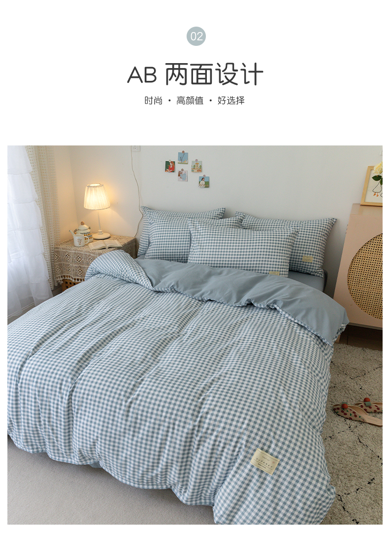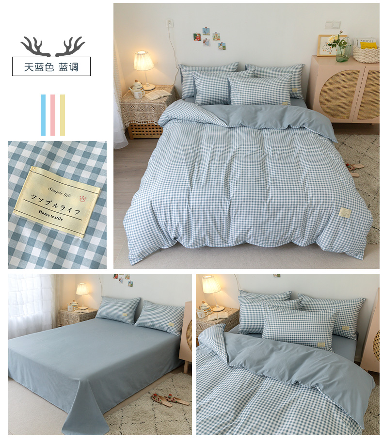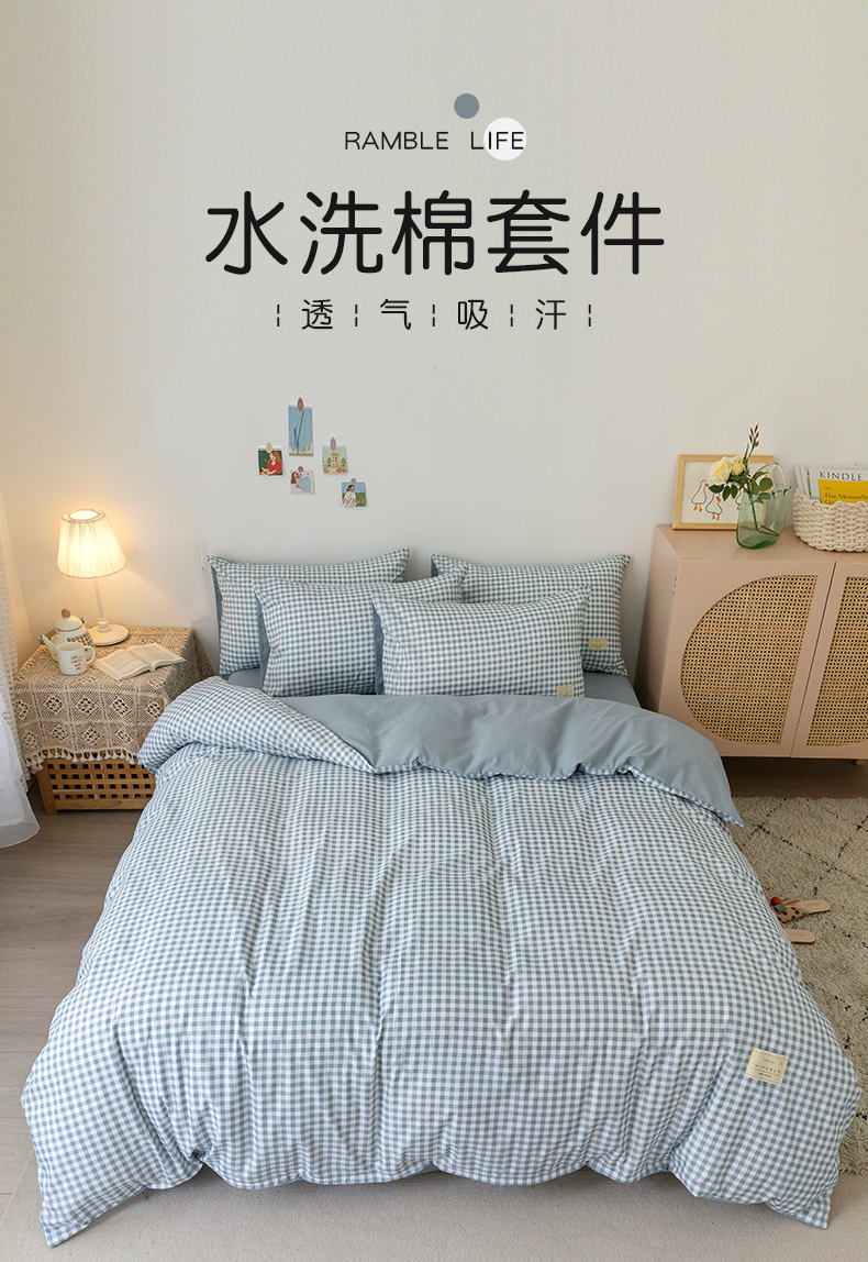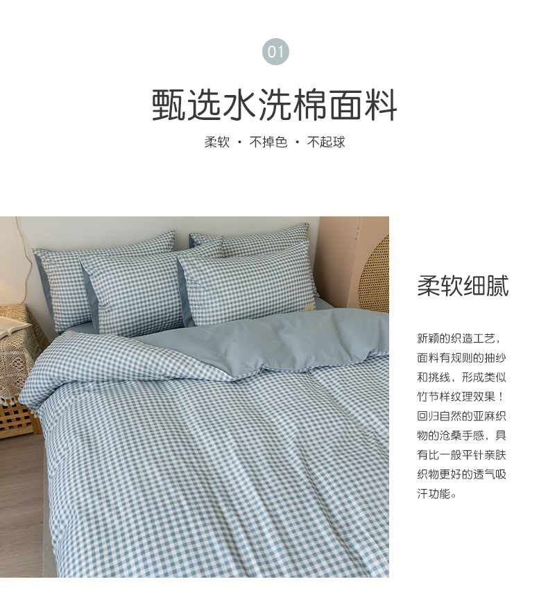 简冠家纺 2022新款水洗棉四件套 天蓝色蓝调