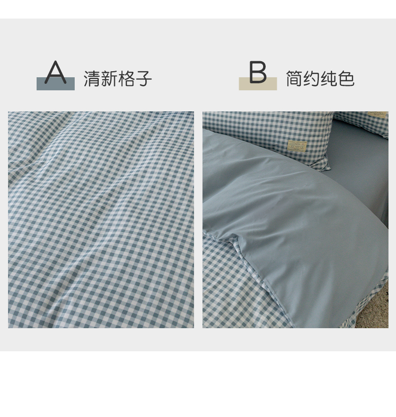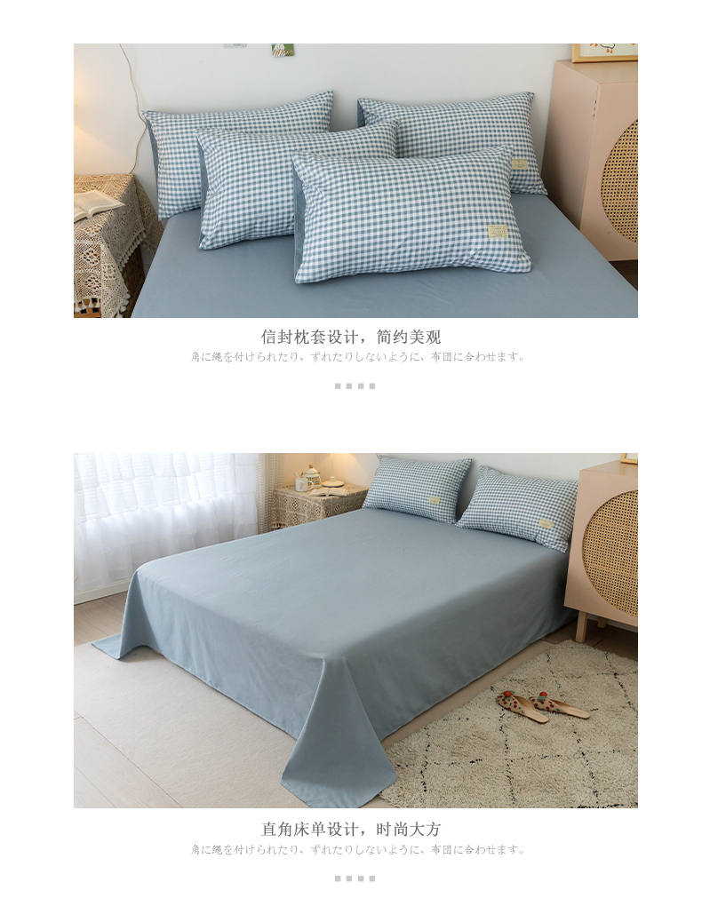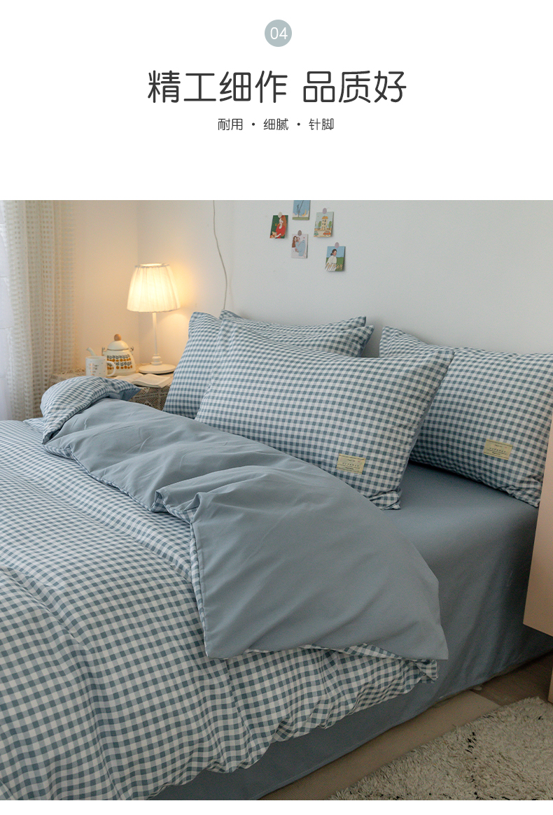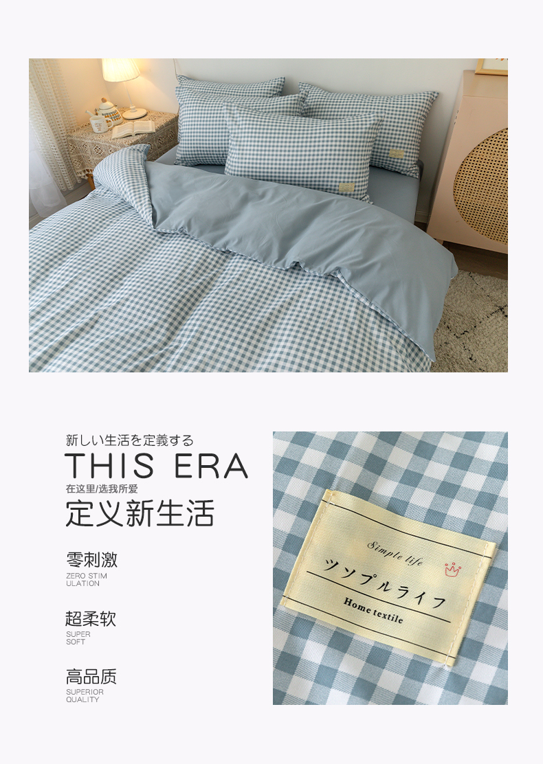简冠家纺 2022新款水洗棉四件套 天蓝色蓝调