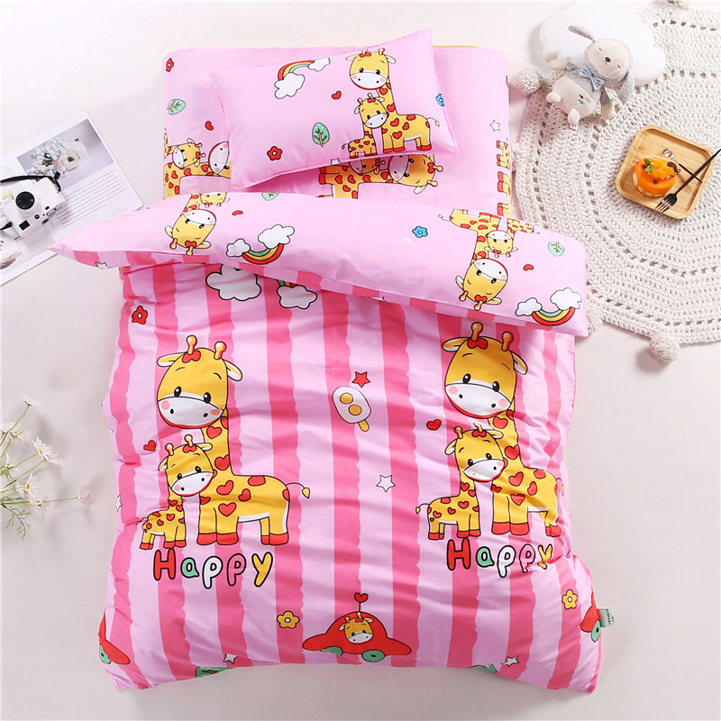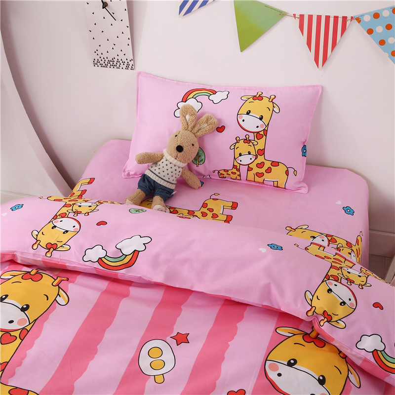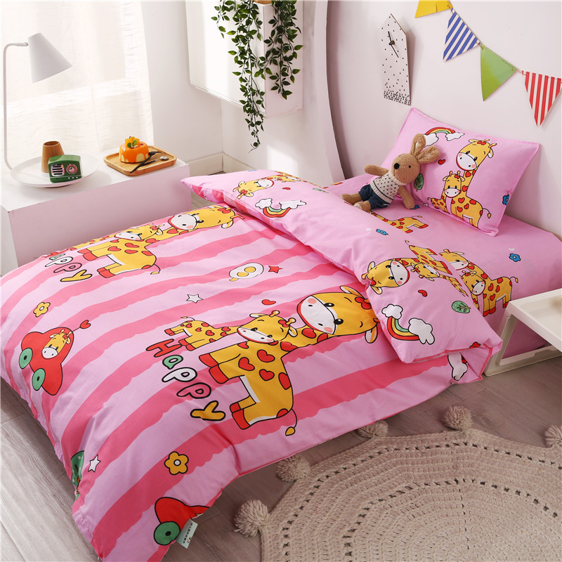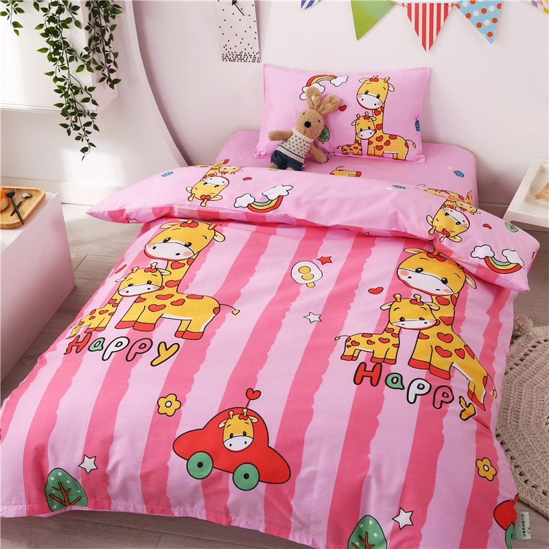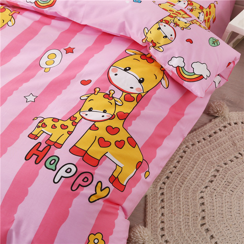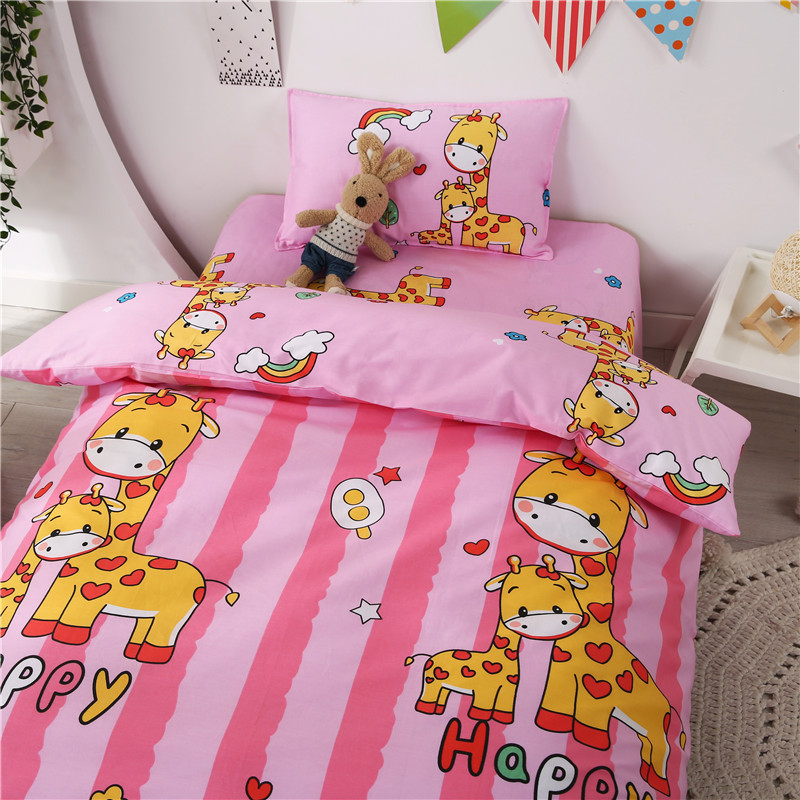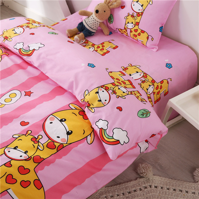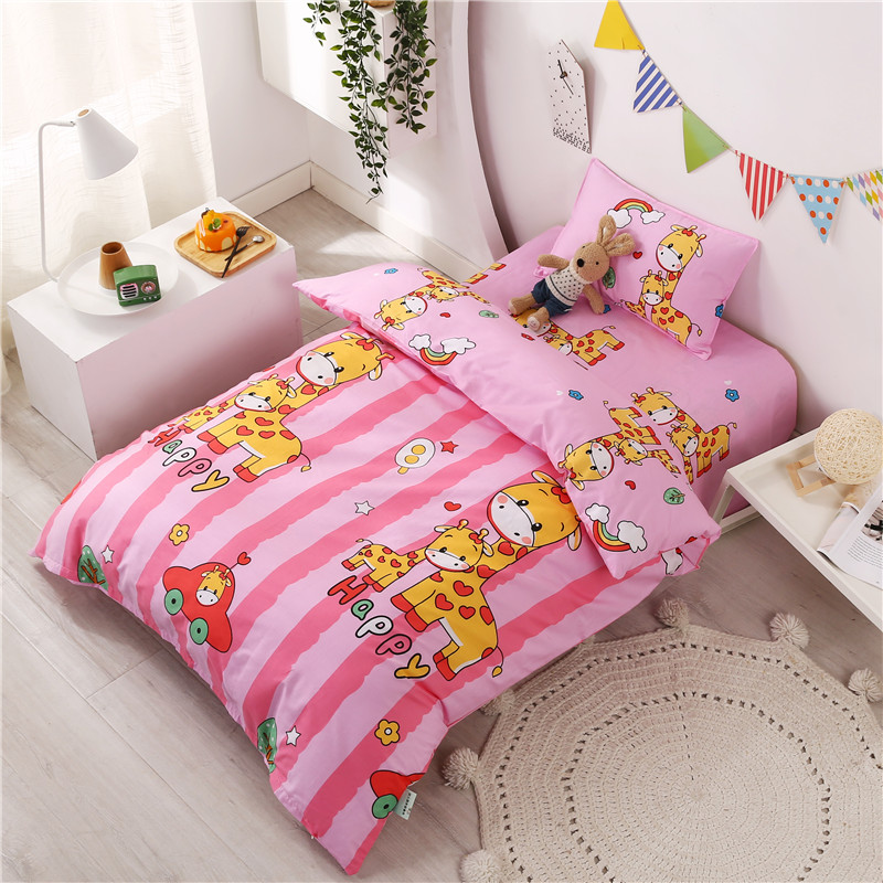 当前位置: 91家纺网 > 商品网购 > 床品套件 > 多件套 > 多件套 > 孩子王家纺 全棉13372小版卡通幼儿园多件套 长颈鹿-粉