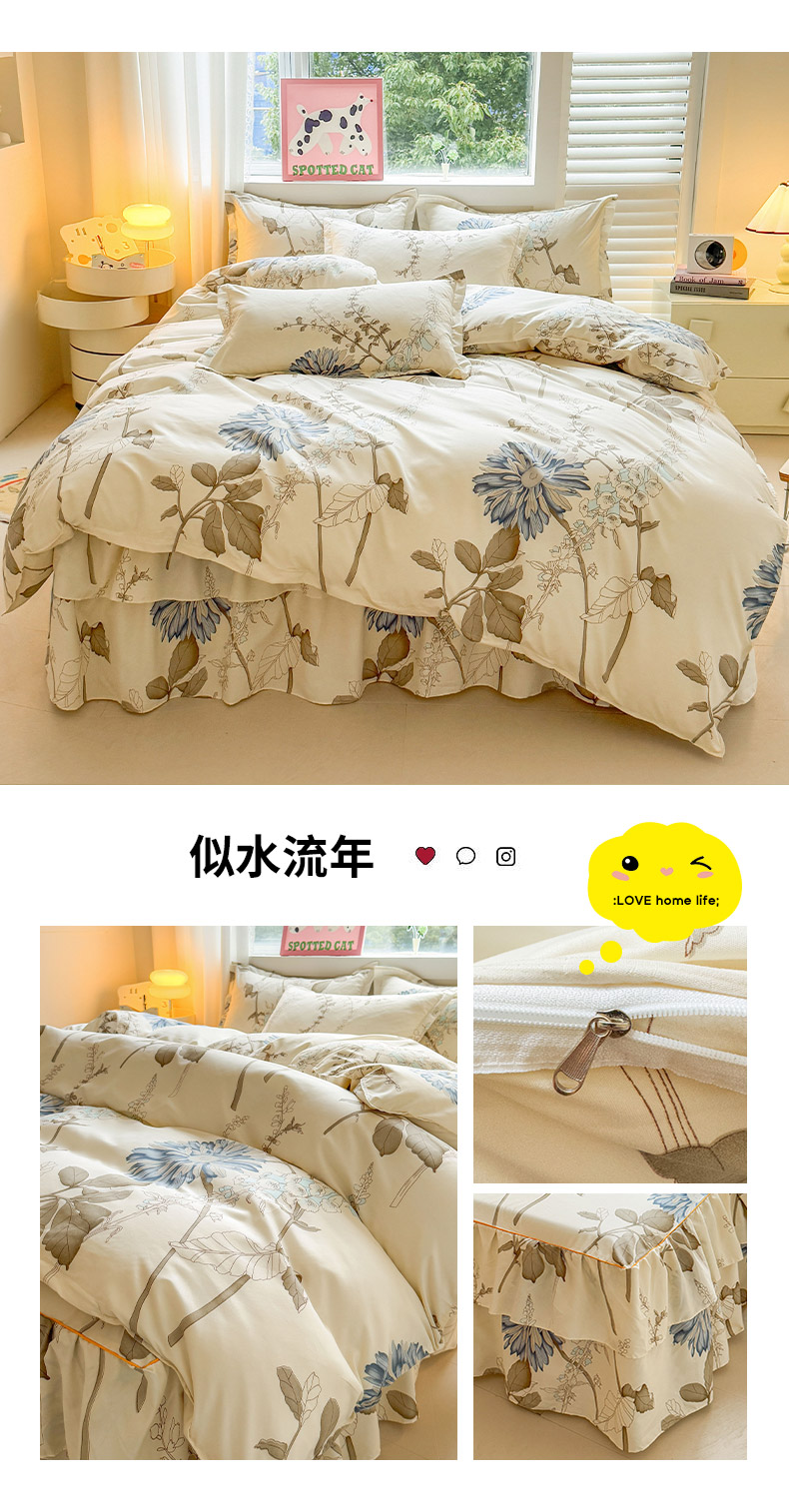 (总)爱一个家 2023新款芦荟棉双边时尚床裙四件套