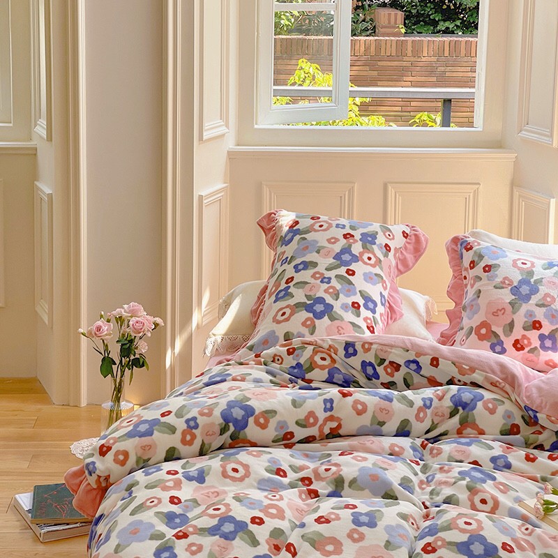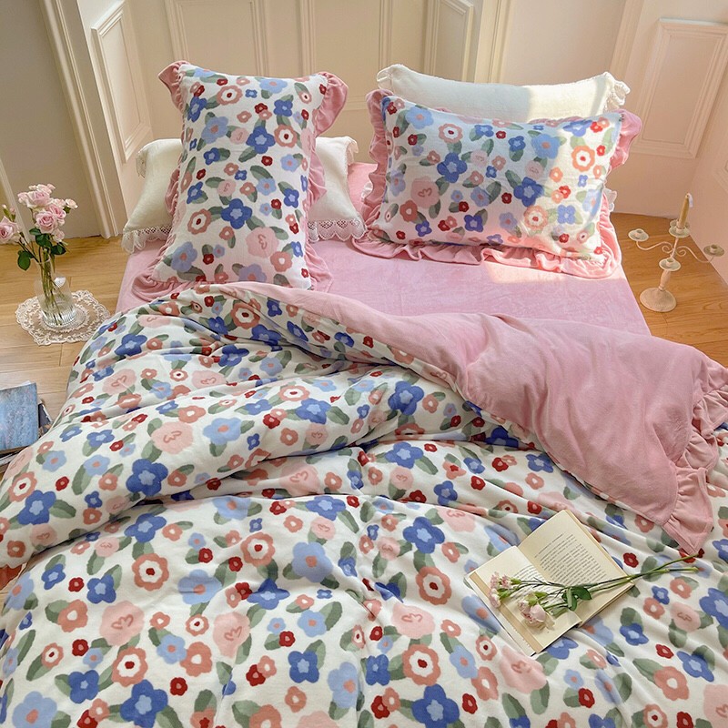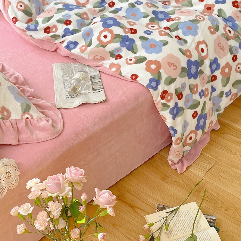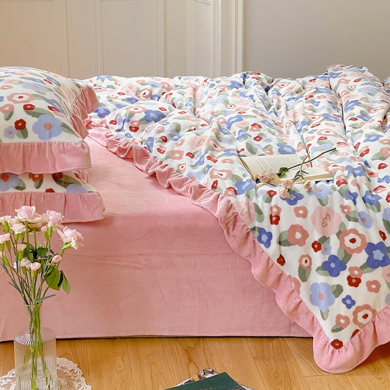 圆岛 2021新款法式浪漫牛奶绒四件套 花簇 沙粉