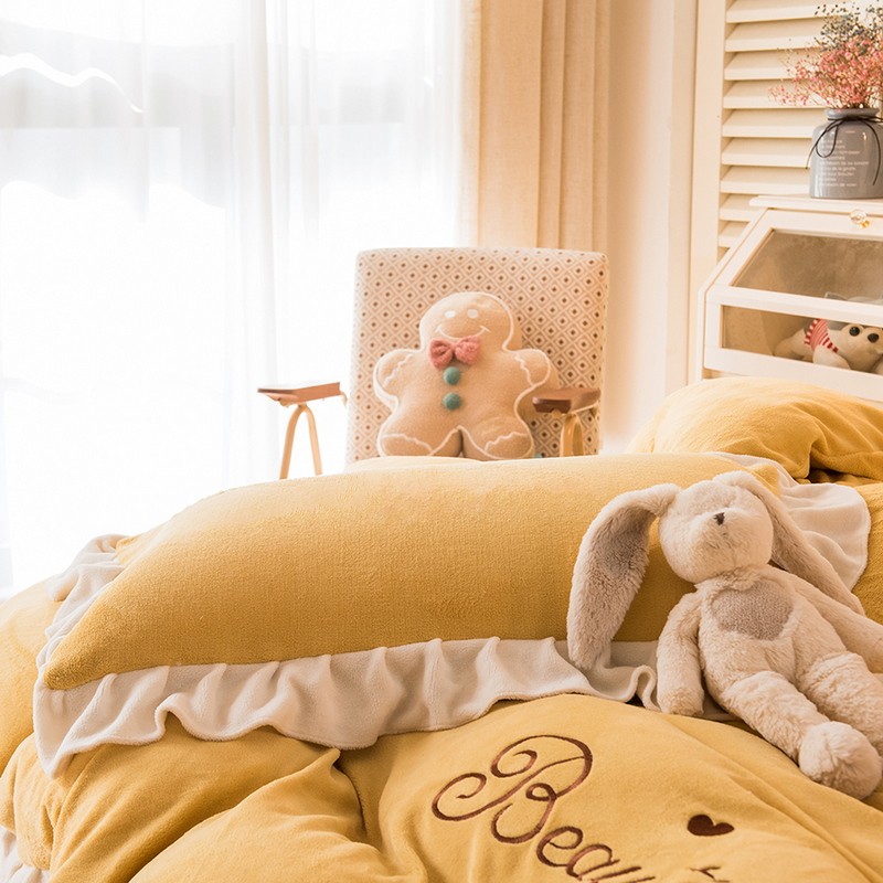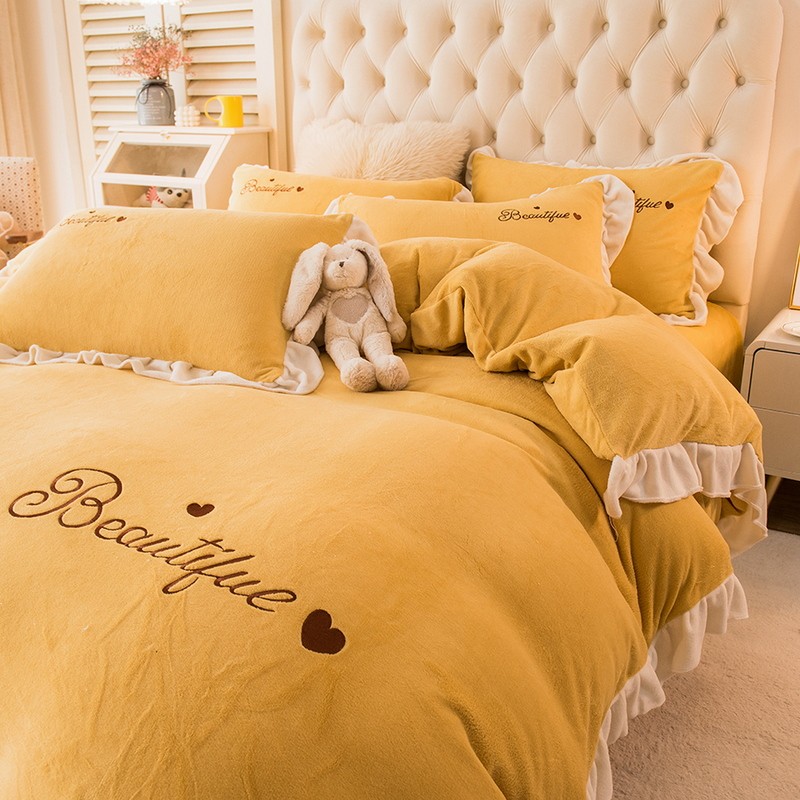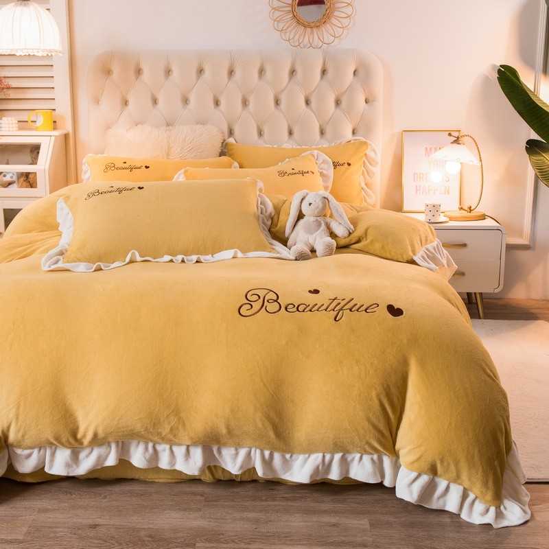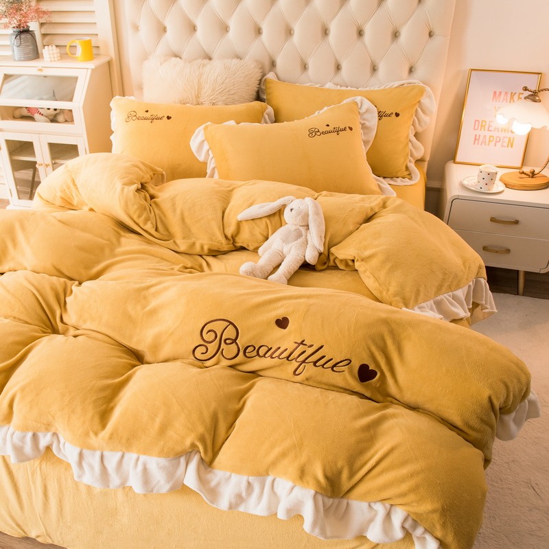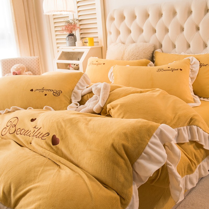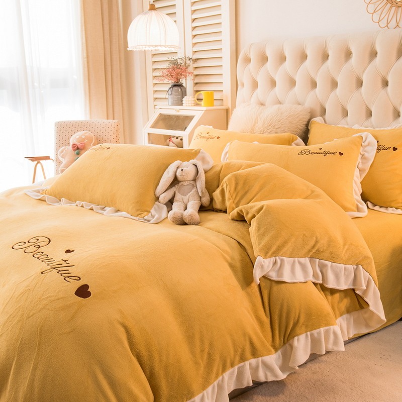 丝羽坊 2021新款牛奶绒韩系心意系列四件套 姜黄