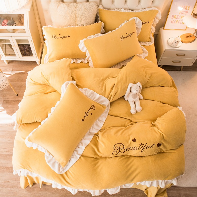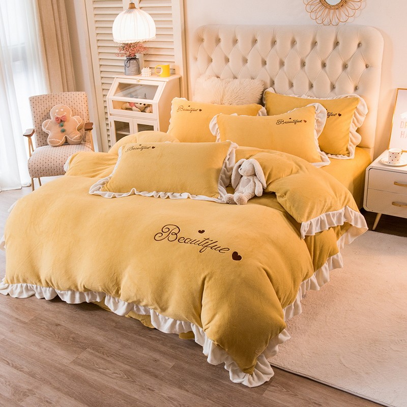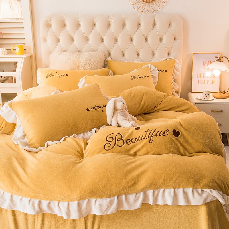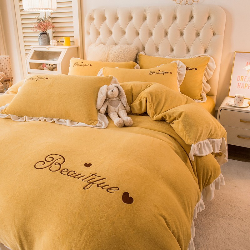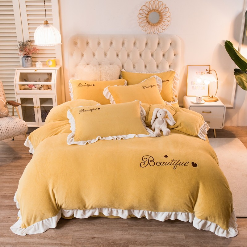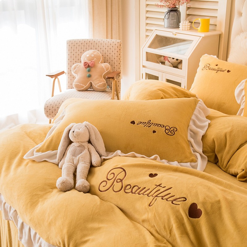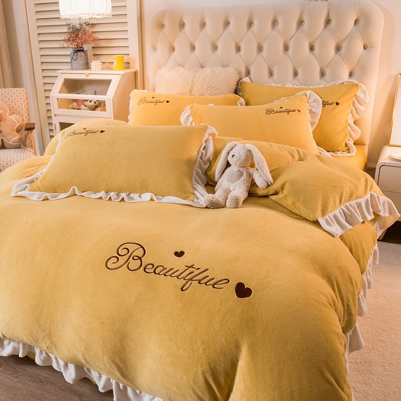 丝羽坊 2021新款牛奶绒韩系心意系列四件套 姜黄