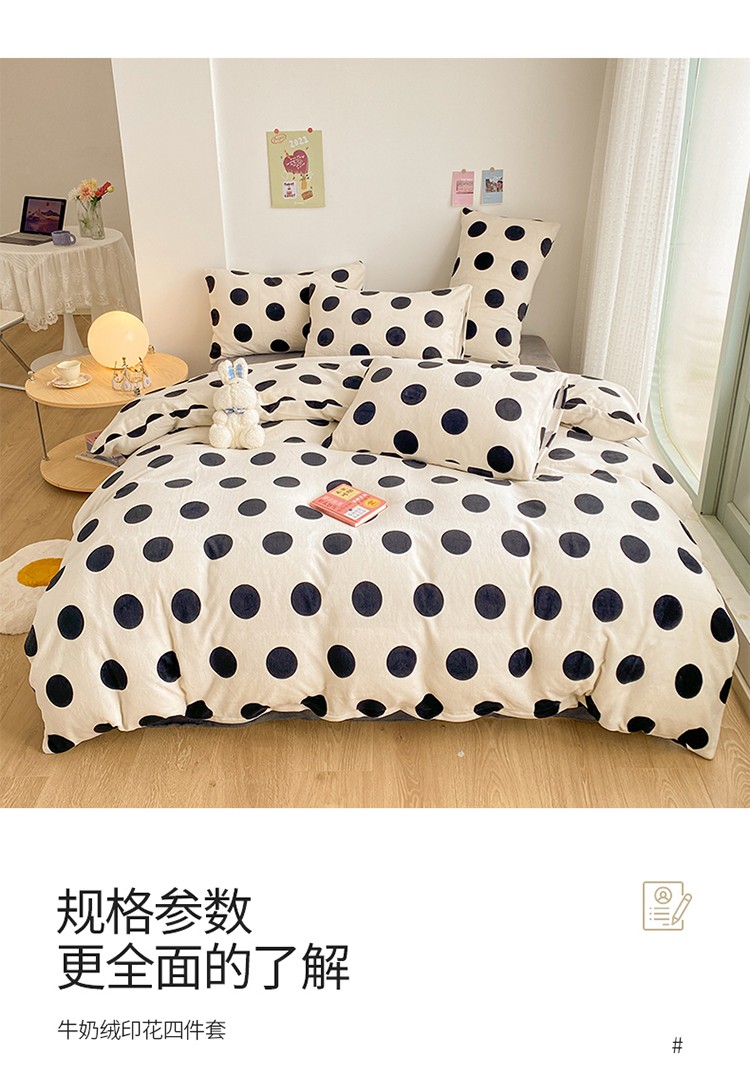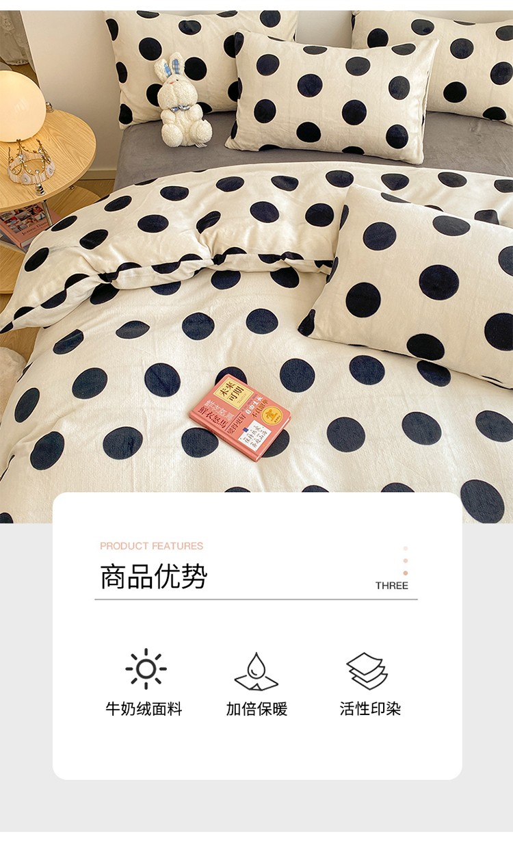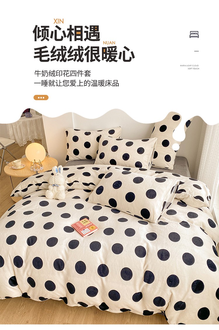(总)雅居纺家纺 2025新款简约兔绒球球保暖舒适四件套-波点,波点-白咖,波点-粉黄,波点-咖,波点-蓝黄