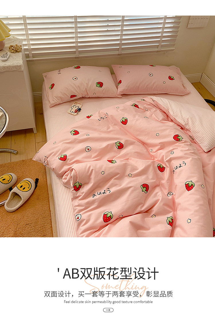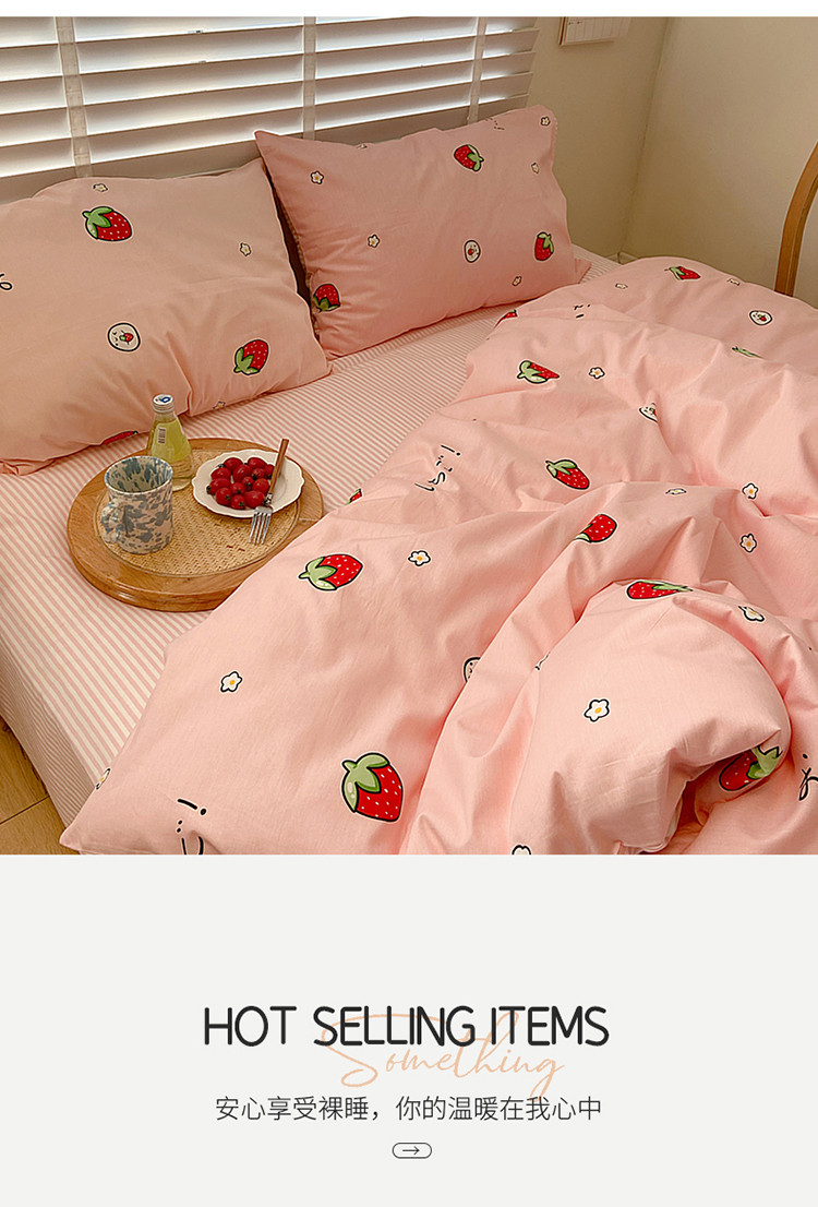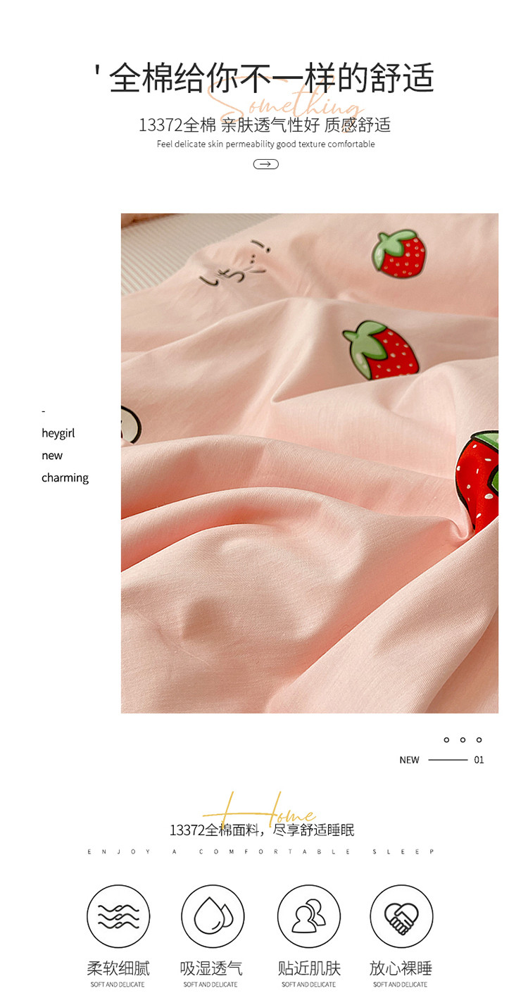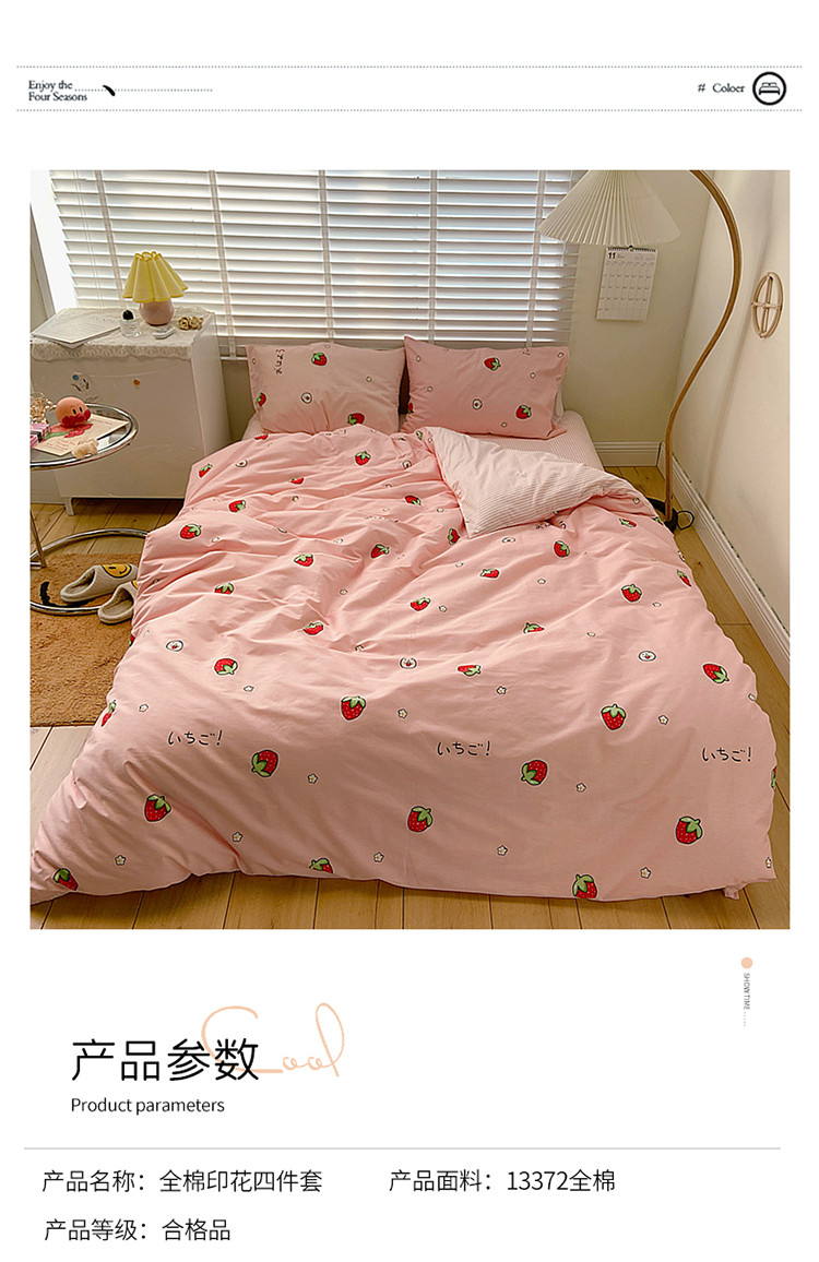 商品名称:雅居纺家纺 2022新款13070全棉四件套 甜心草莓