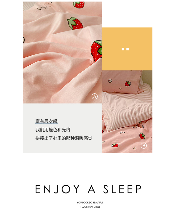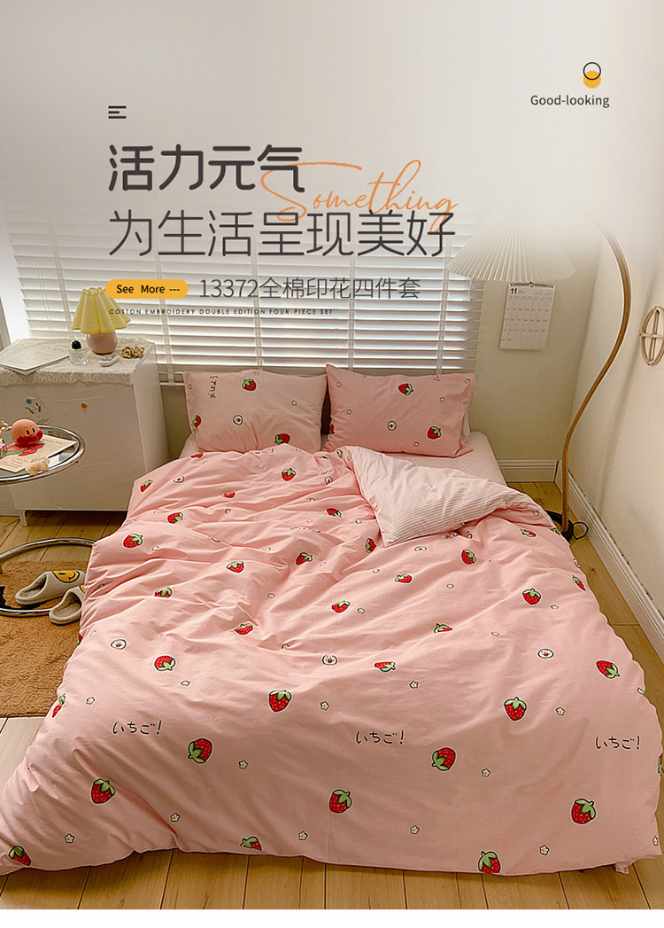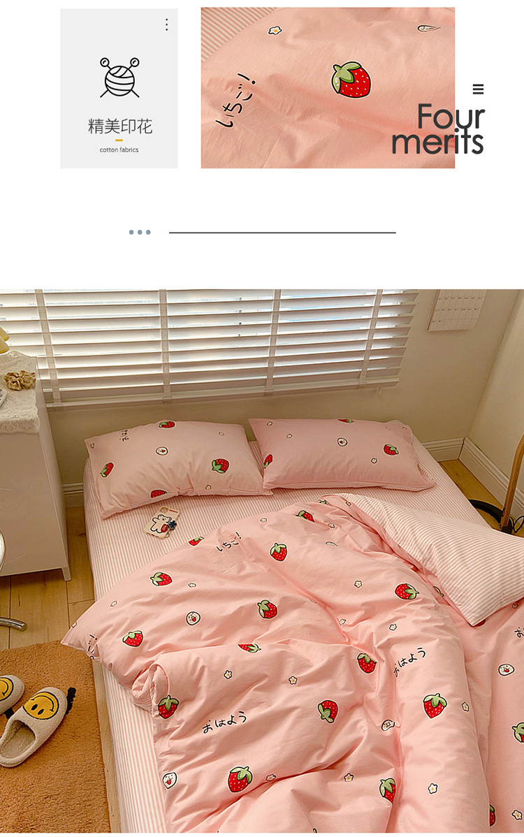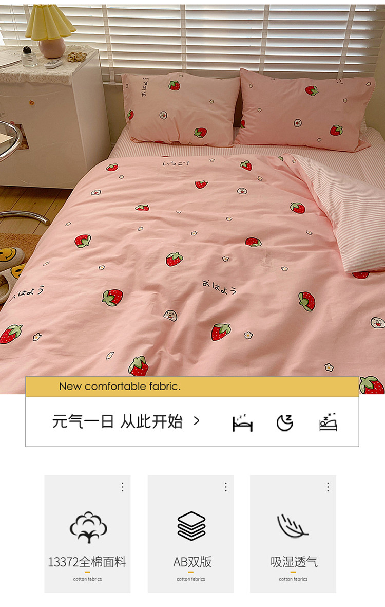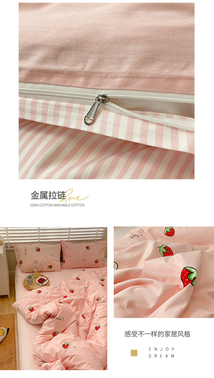 商品名称:雅居纺家纺 2022新款13070全棉四件套 甜心草莓
