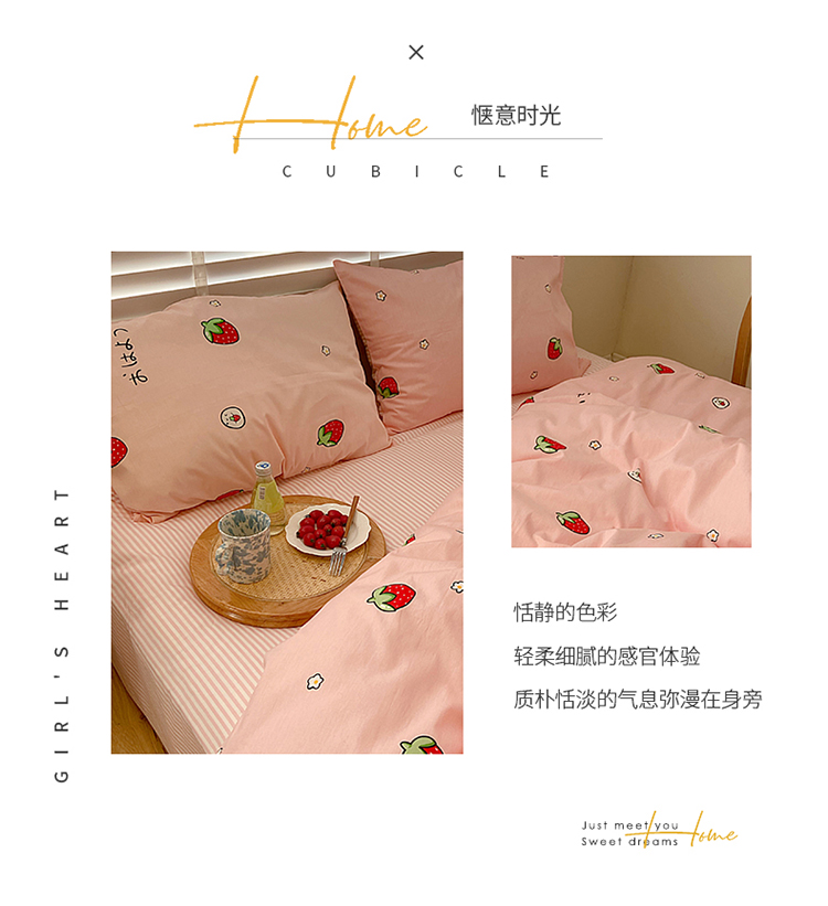 雅居纺家纺 2022新款13070全棉四件套 甜心草莓