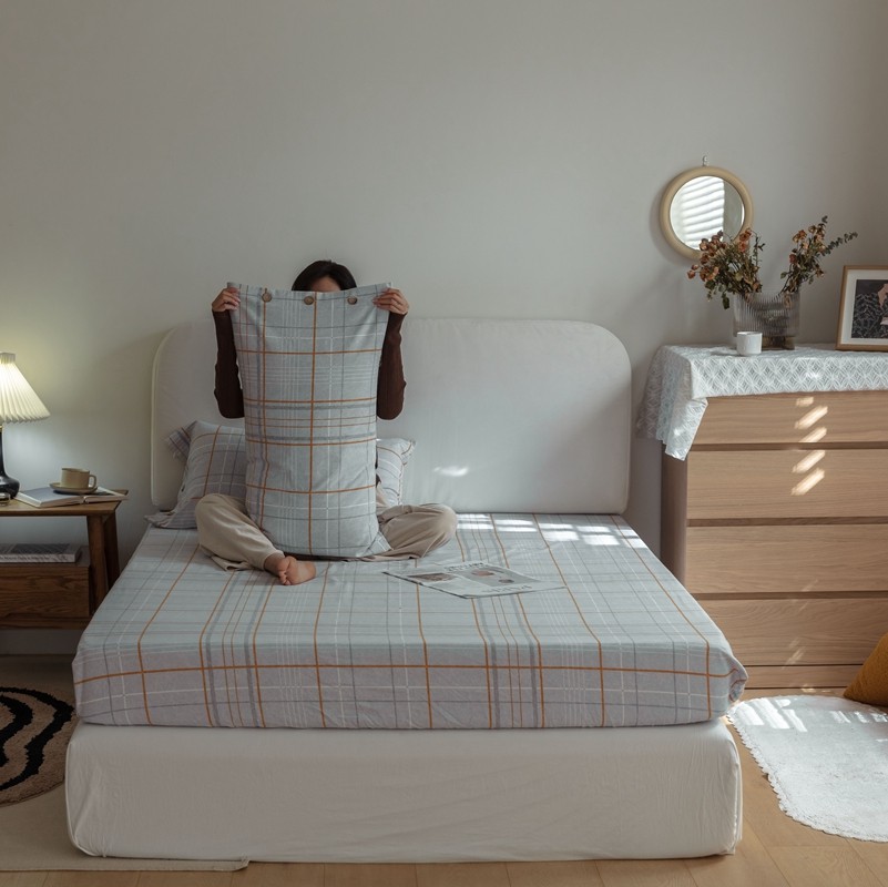 寐眠 2021新款全棉磨毛印花床笠 遇见-月牙灰