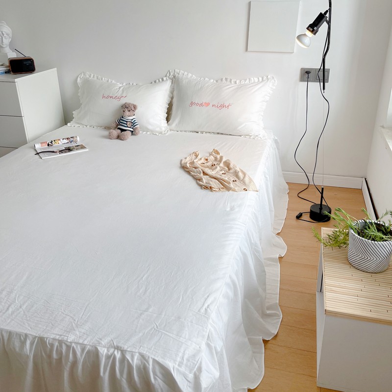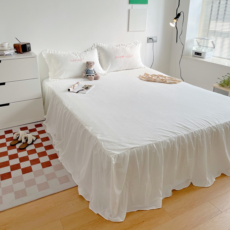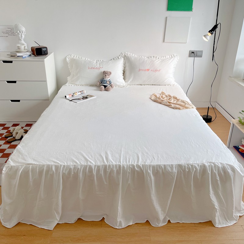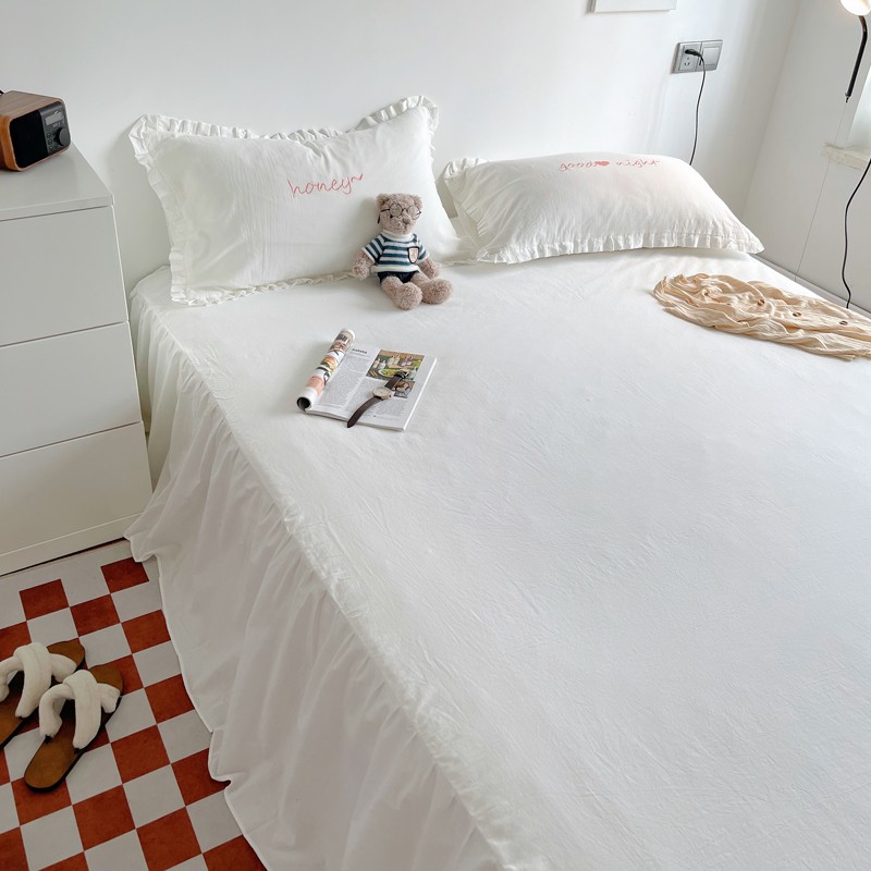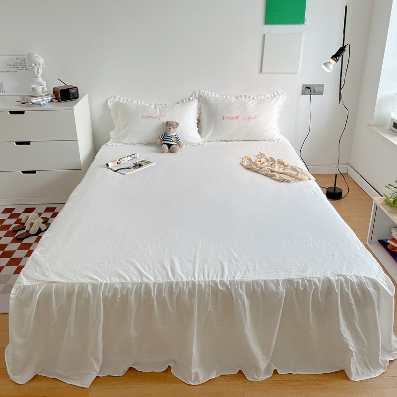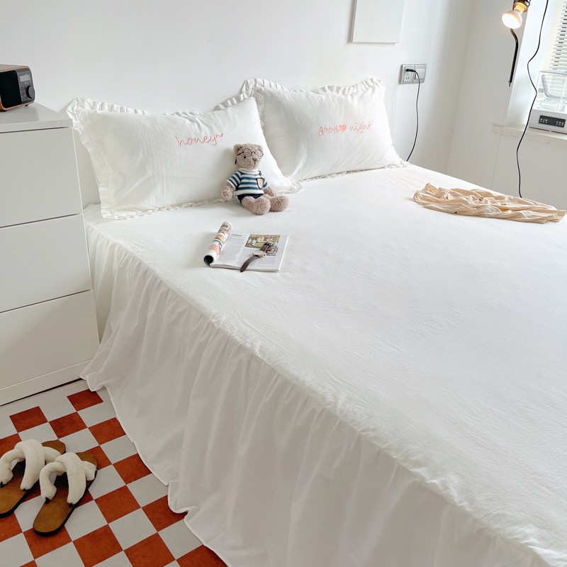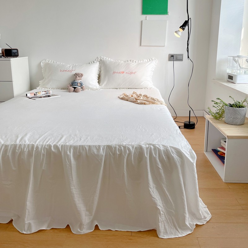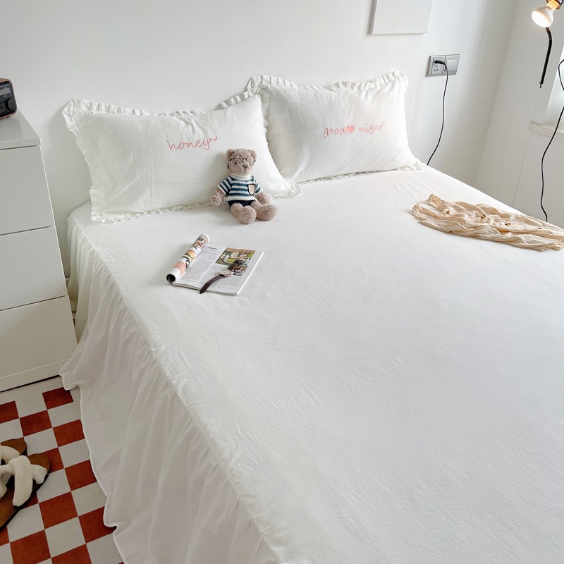 六巷胡同 2022春夏新品ins风水洗棉单品床裙三件套 ins本白