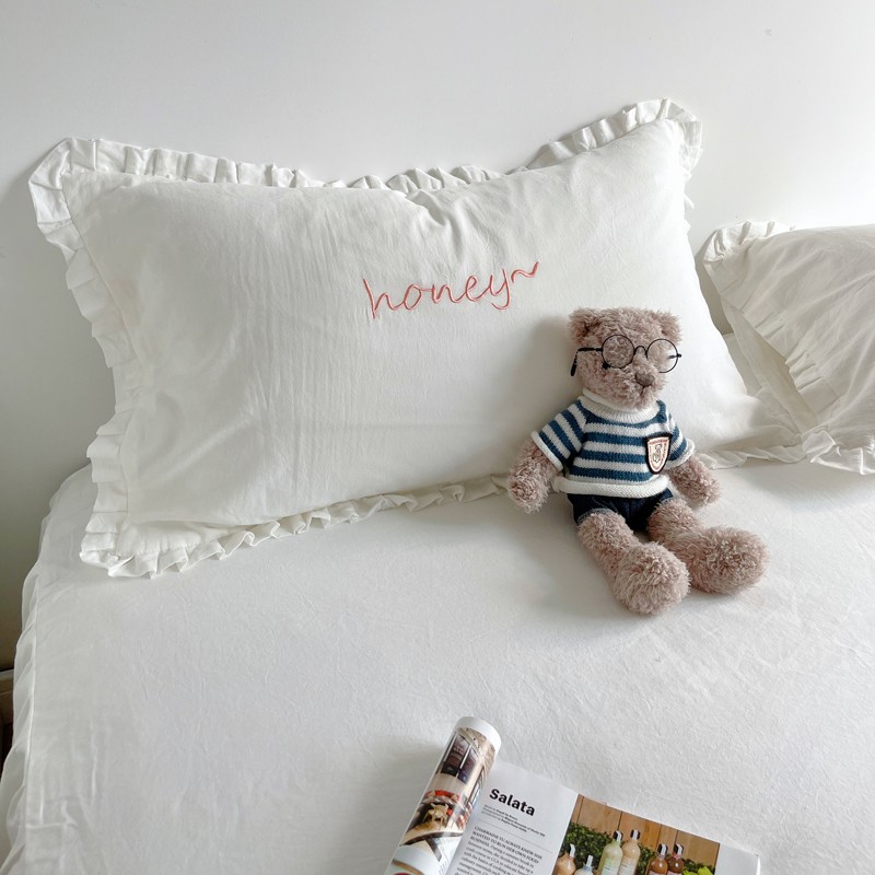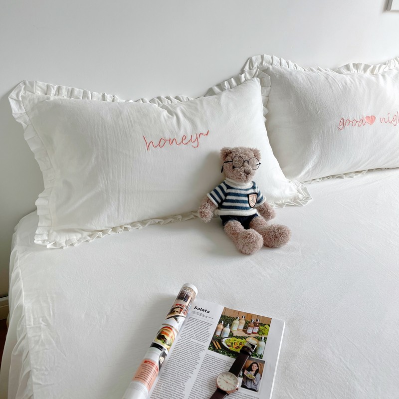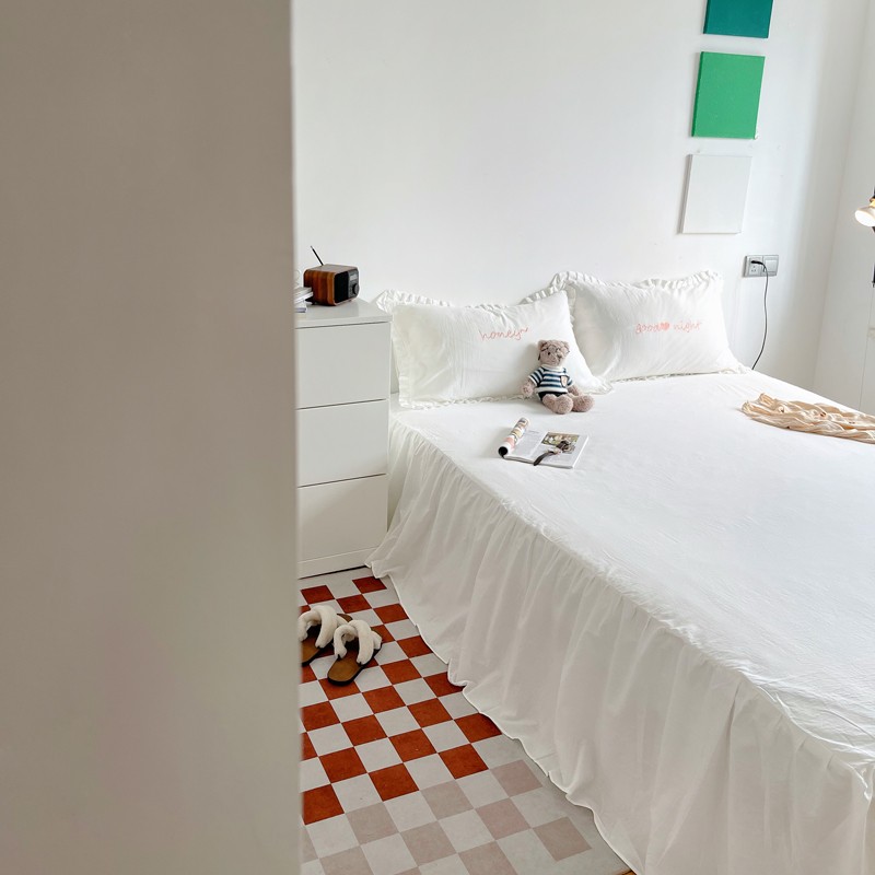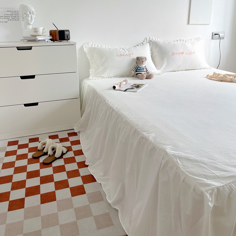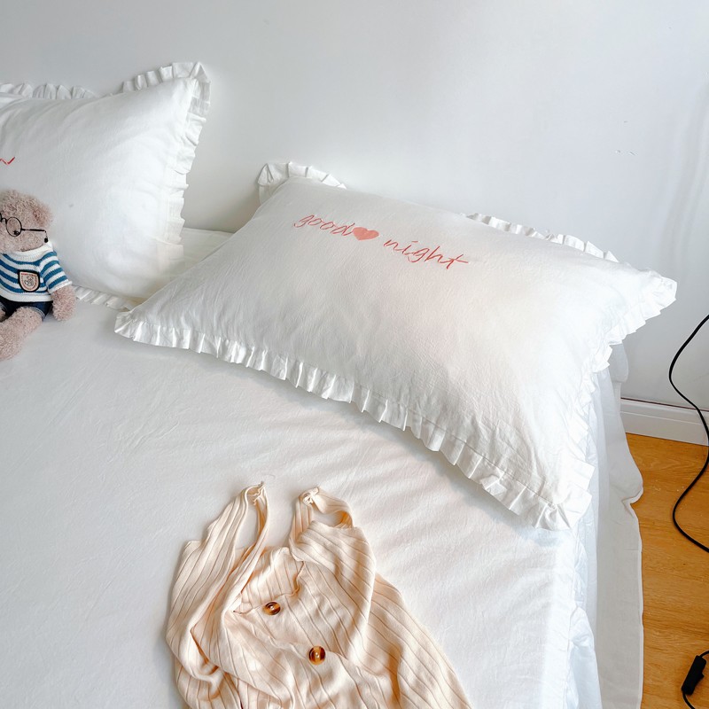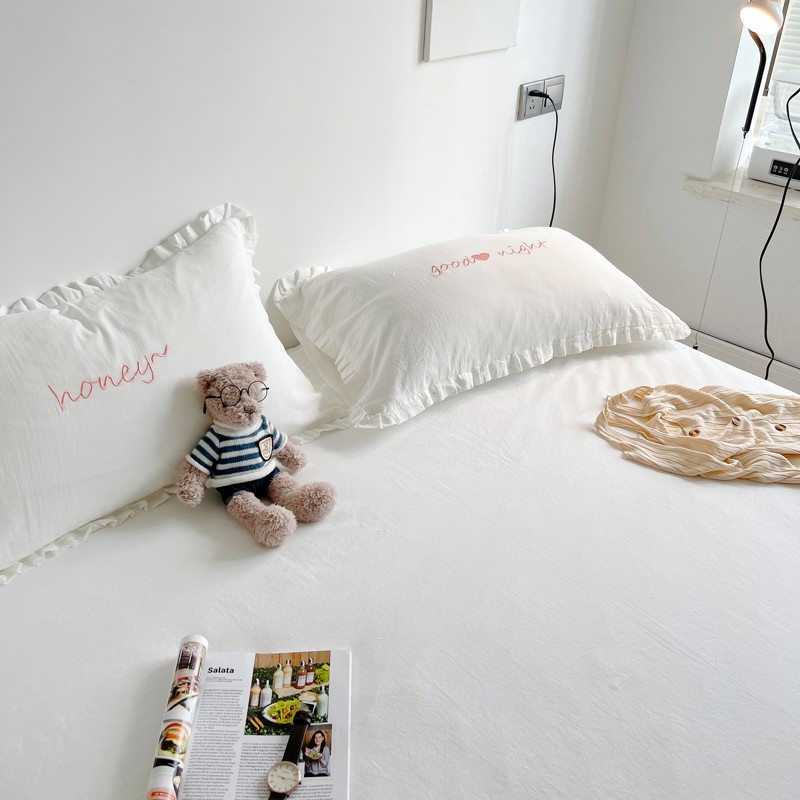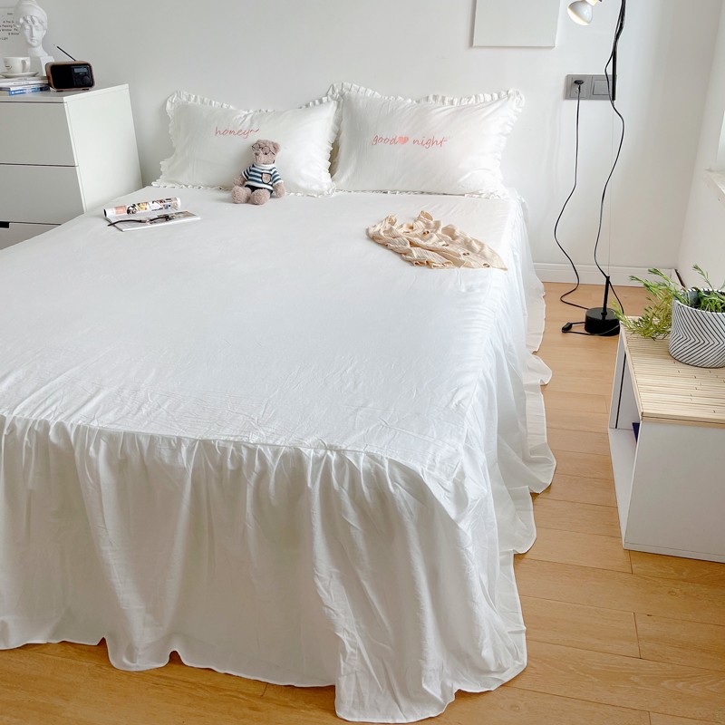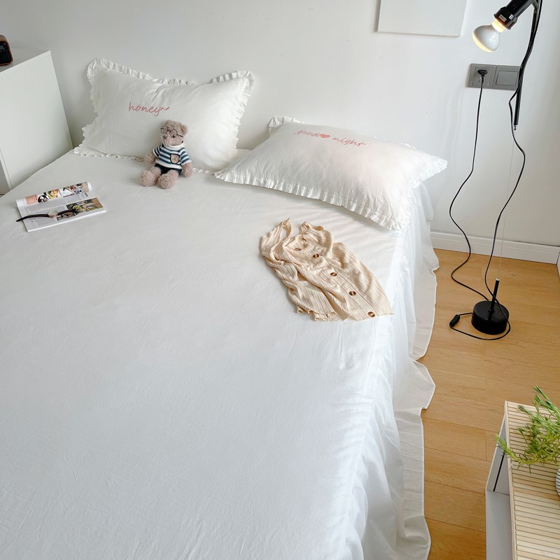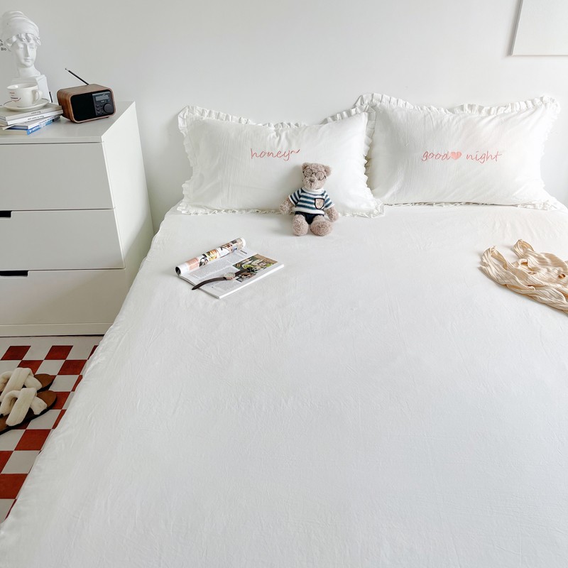 六巷胡同 2022春夏新品ins风水洗棉单品床裙三件套 ins本白