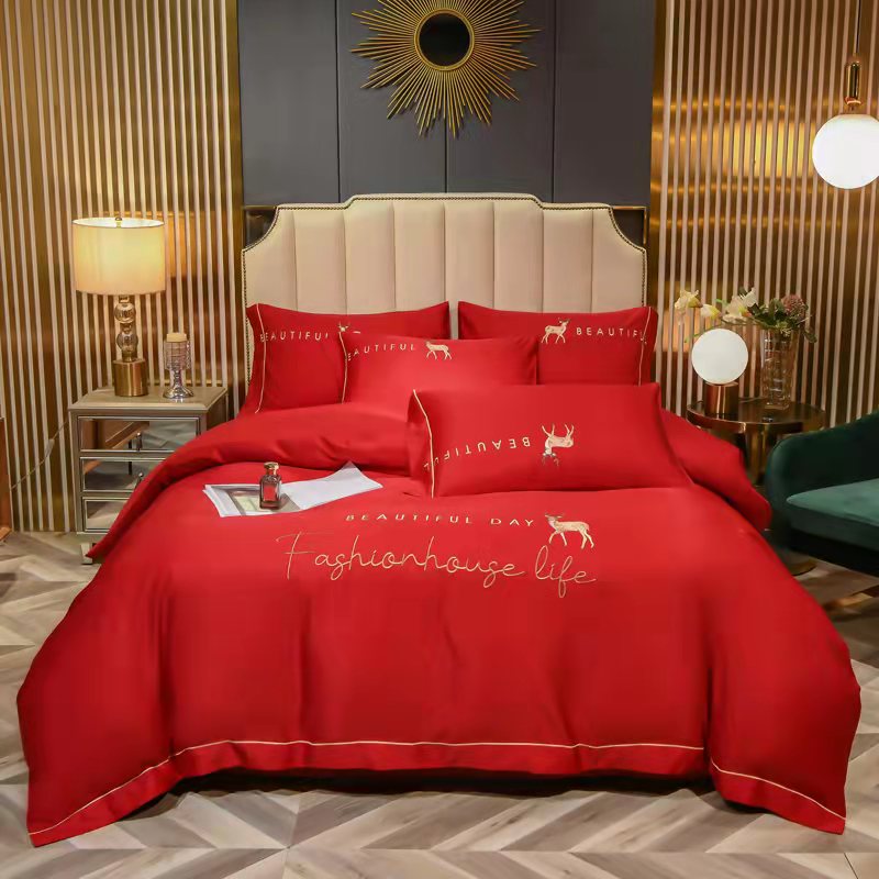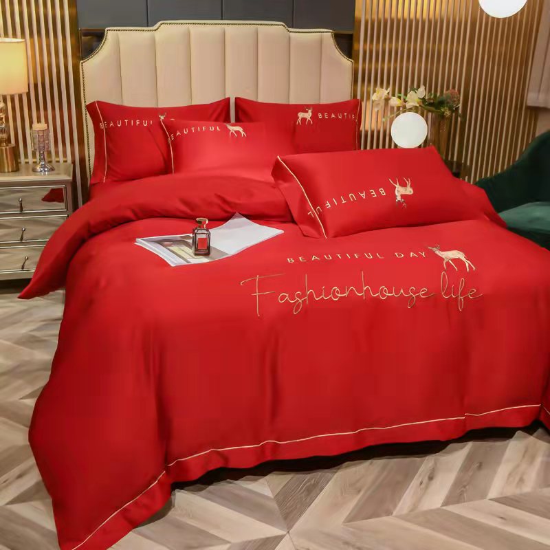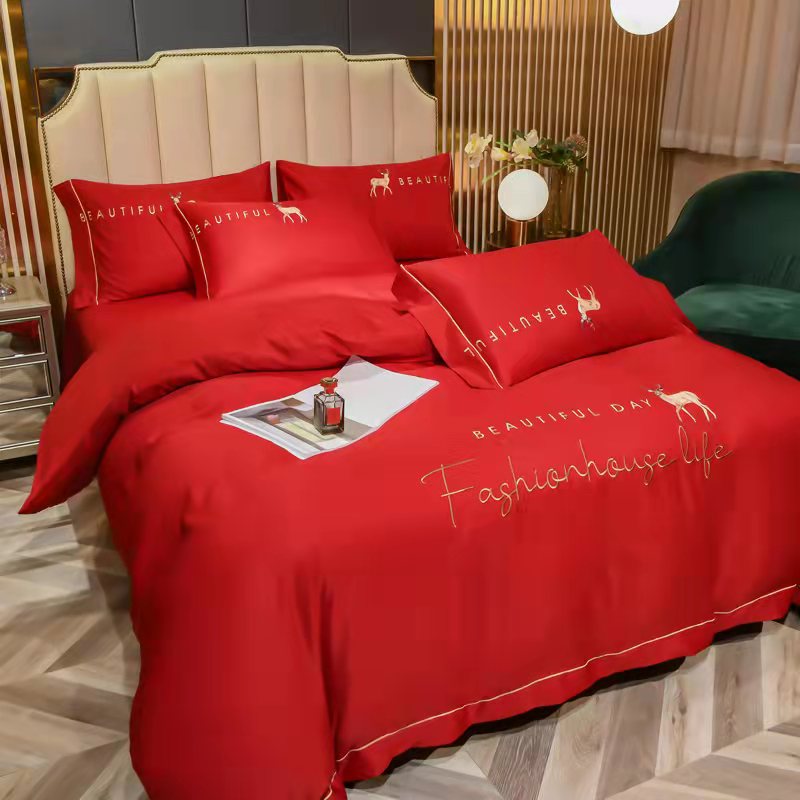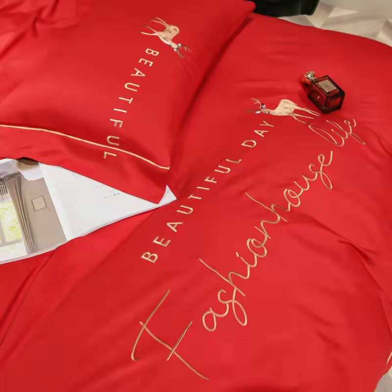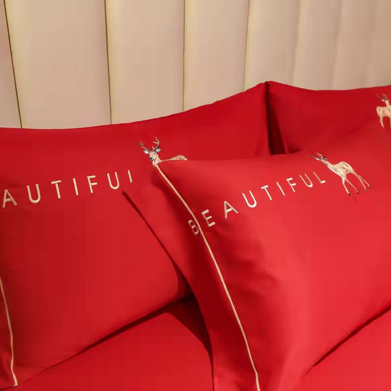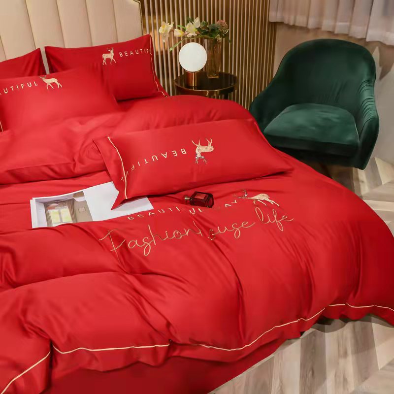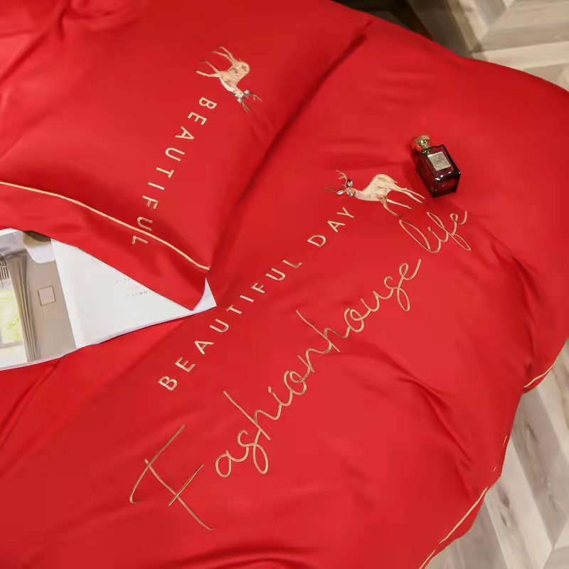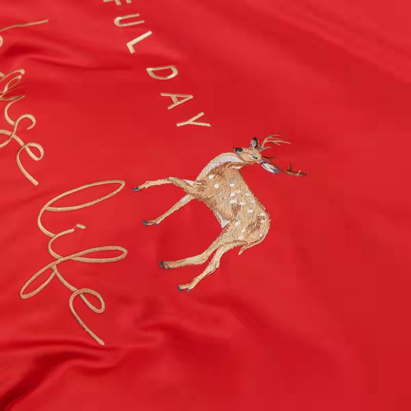 金麦 2021亲肤刺绣磨毛四件套一鹿有你系列 中国红