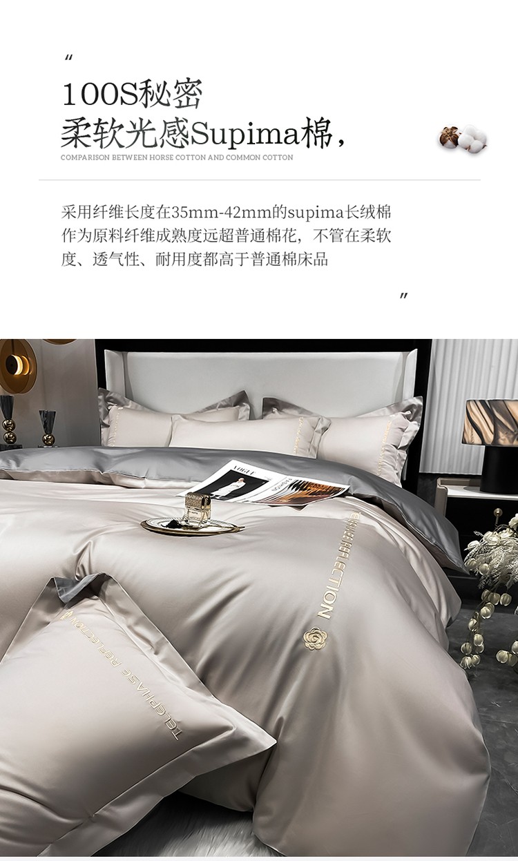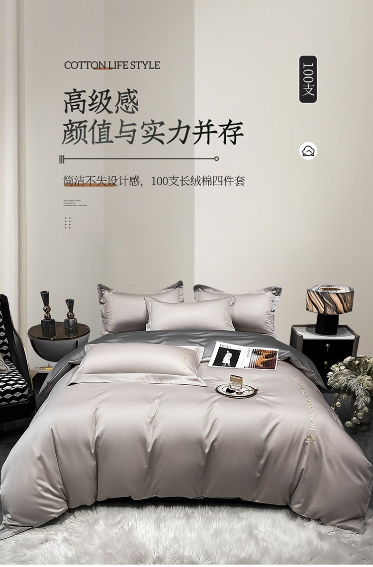 蓝巢家纺 2022新款100支长绒棉四件套 邂逅-山灰