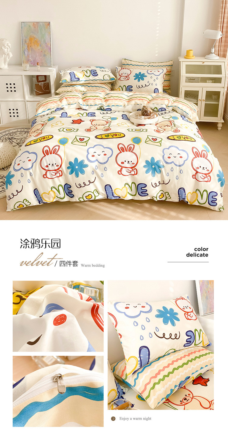 (总)沐辰 2025新款牛奶绒绣花三丽鸥系列四件套,酷酷库洛米,假日云朵狗,暖心凯蒂猫,骑行蛙蛙,气球美乐蒂,玩家帕恰狗