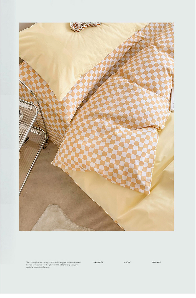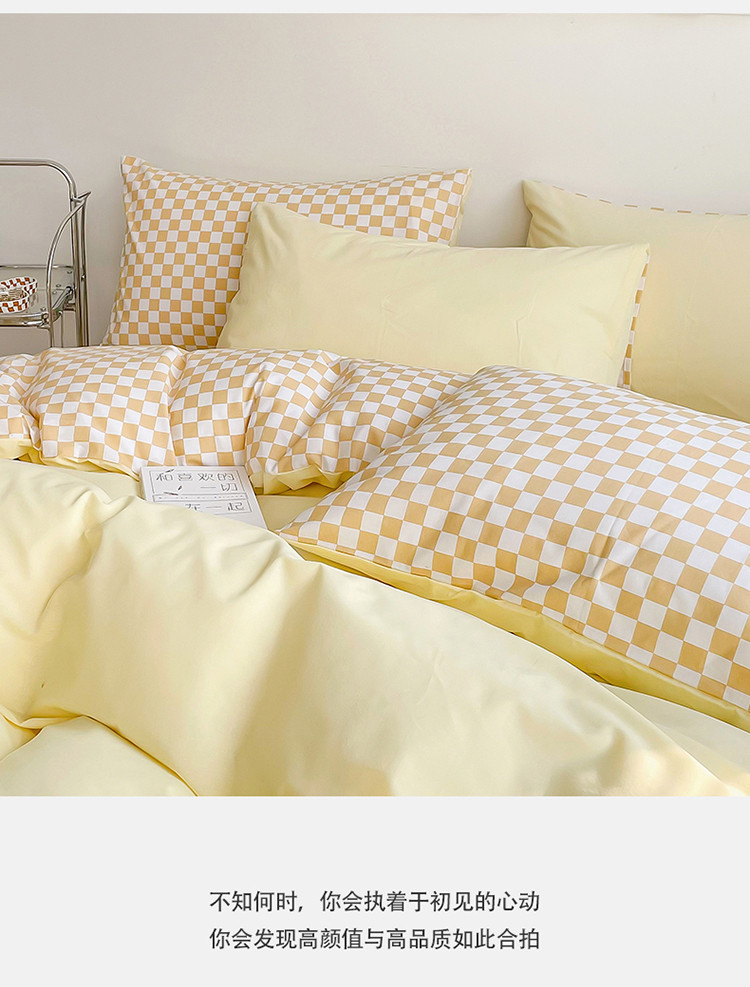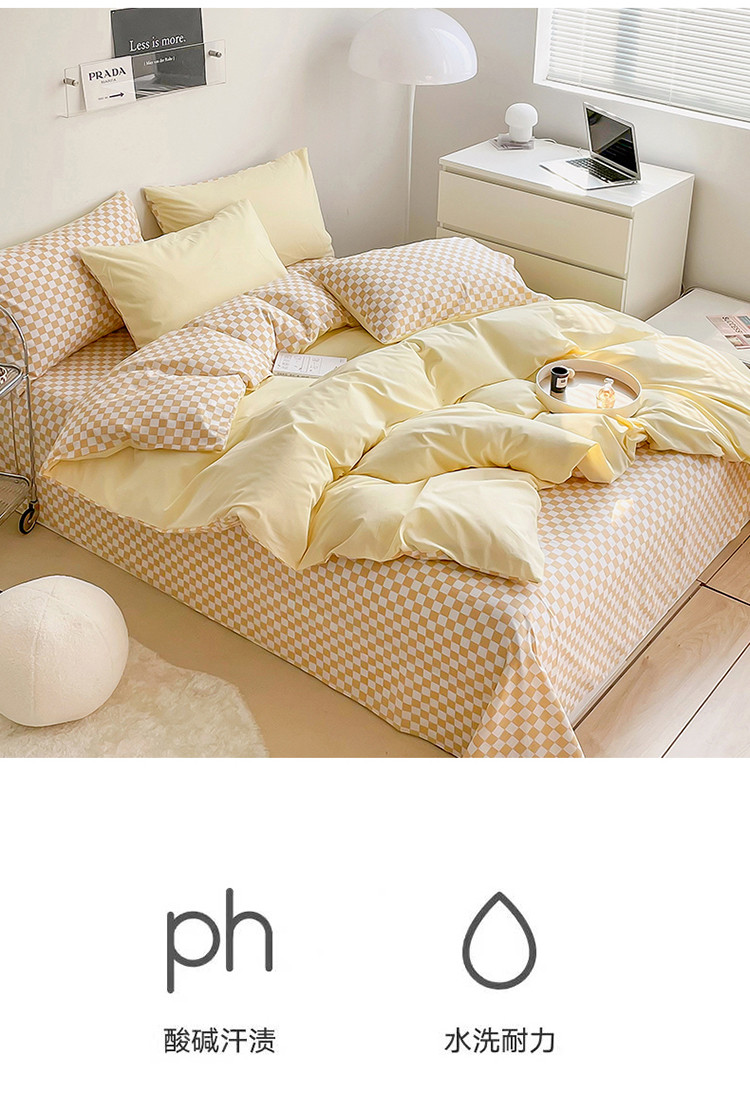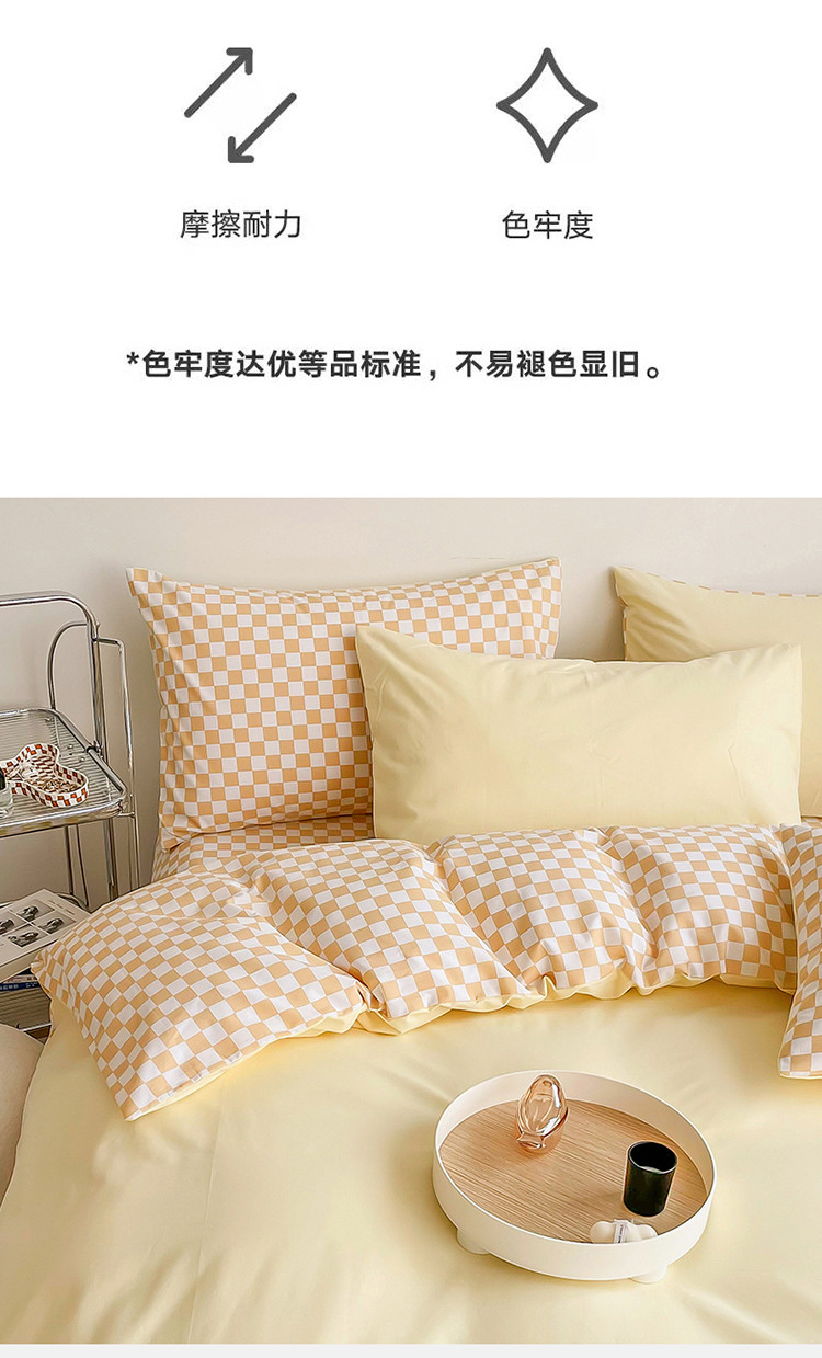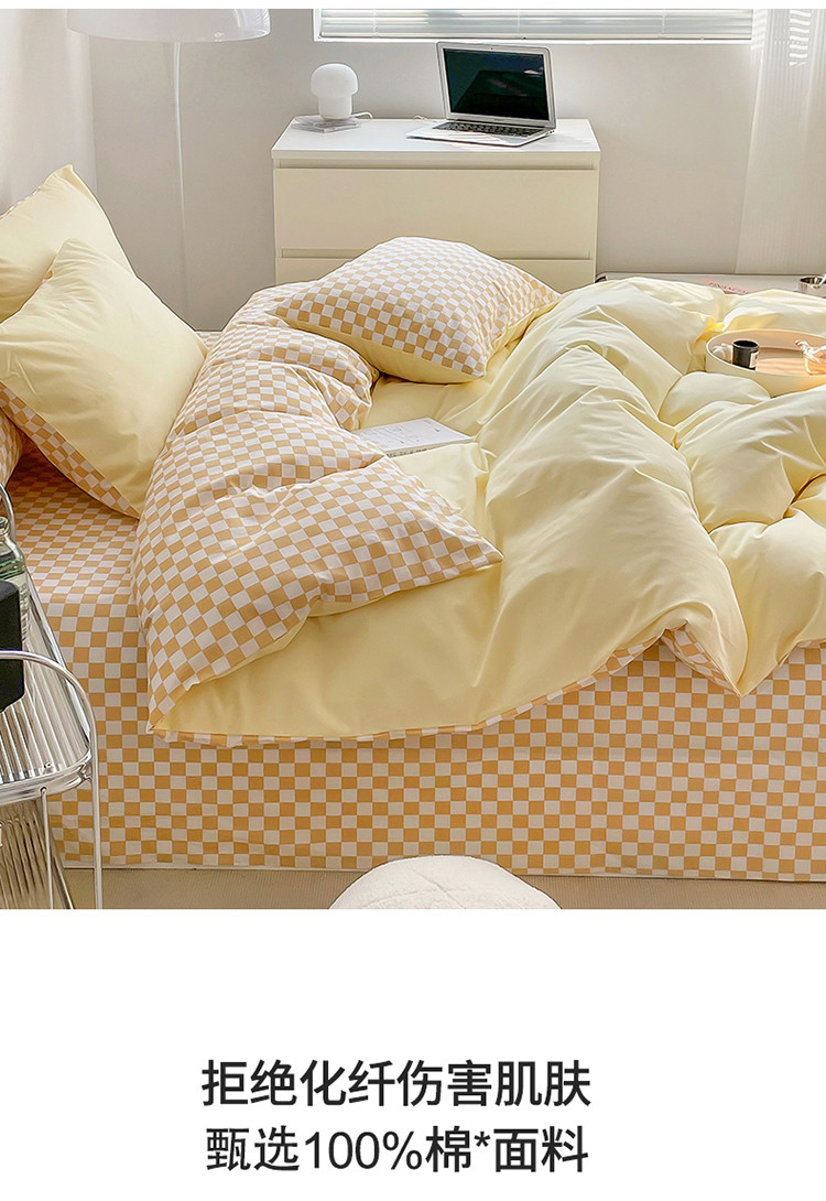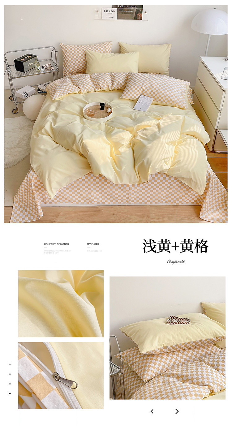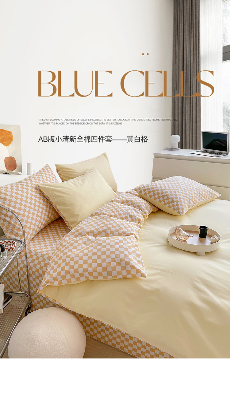 当前位置: 91家纺网 > 商品网购 > 床品套件 > 四件套 > 水洗棉四件套 > 798 新款全棉13070水洗棉纯色A+棋盘格B四件套 浅黄+黄格